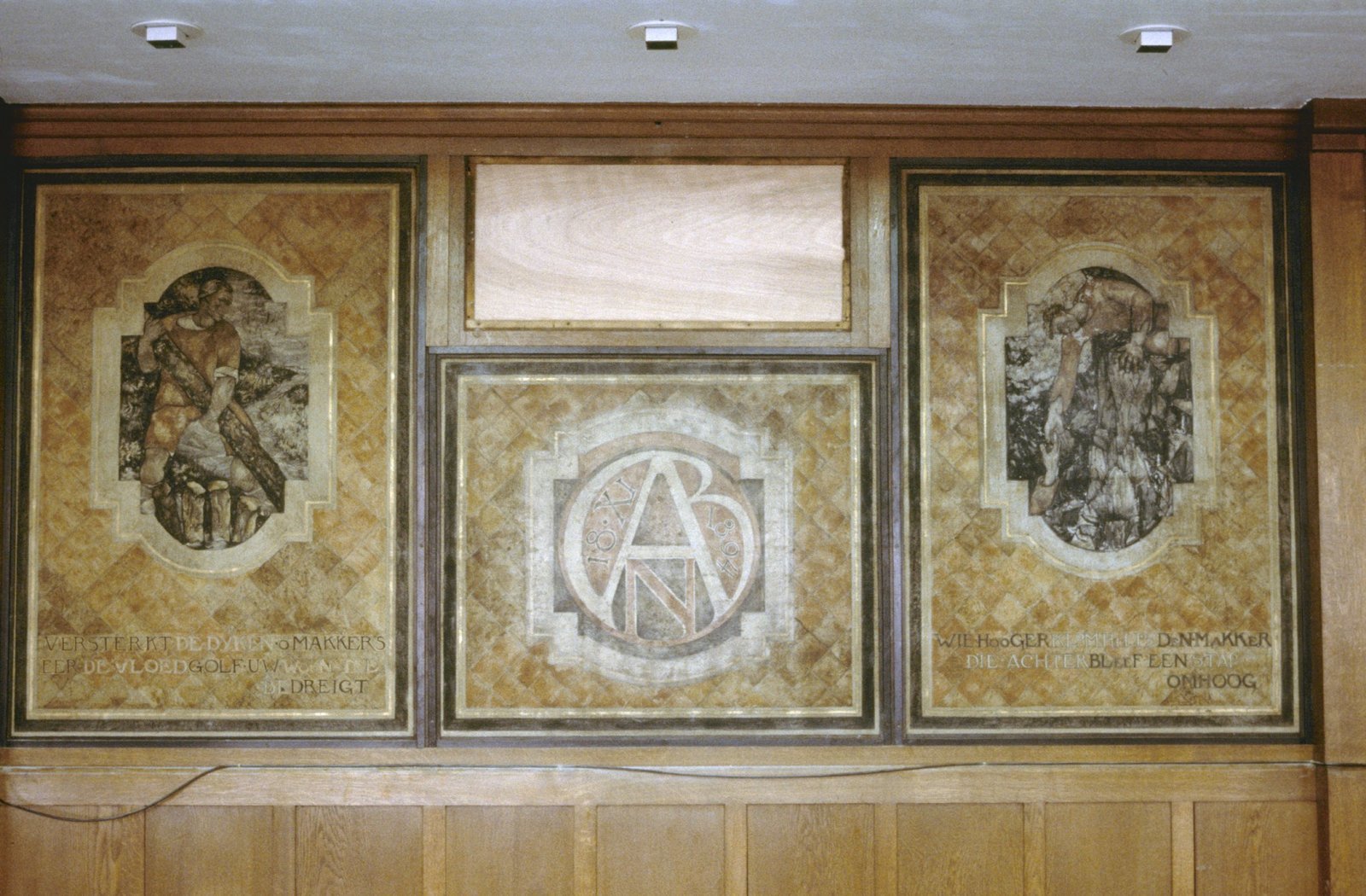 Interieur, Bondsraadzaal, rechterwand, nisschilderin...