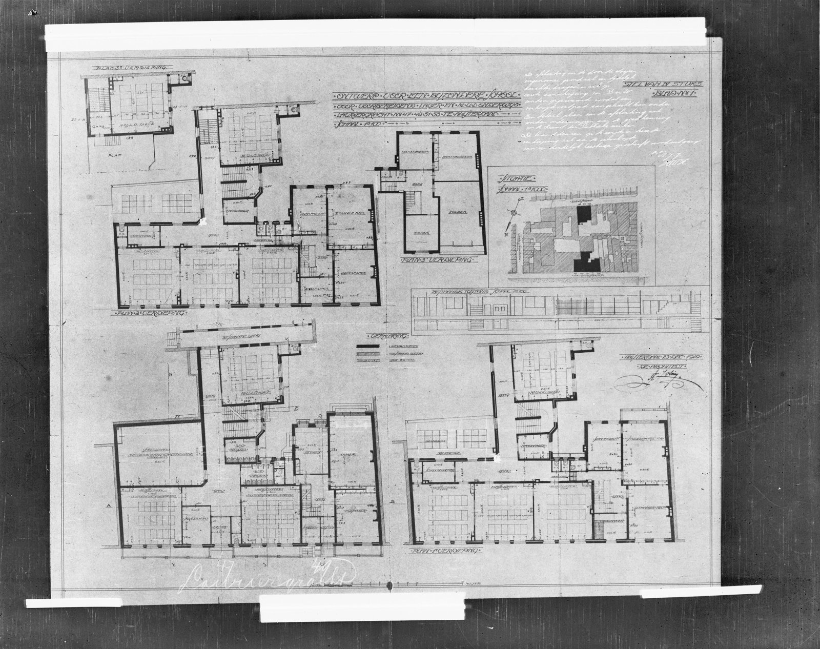 ontwerp tekening doorsnede gezien naar de achterzijd...