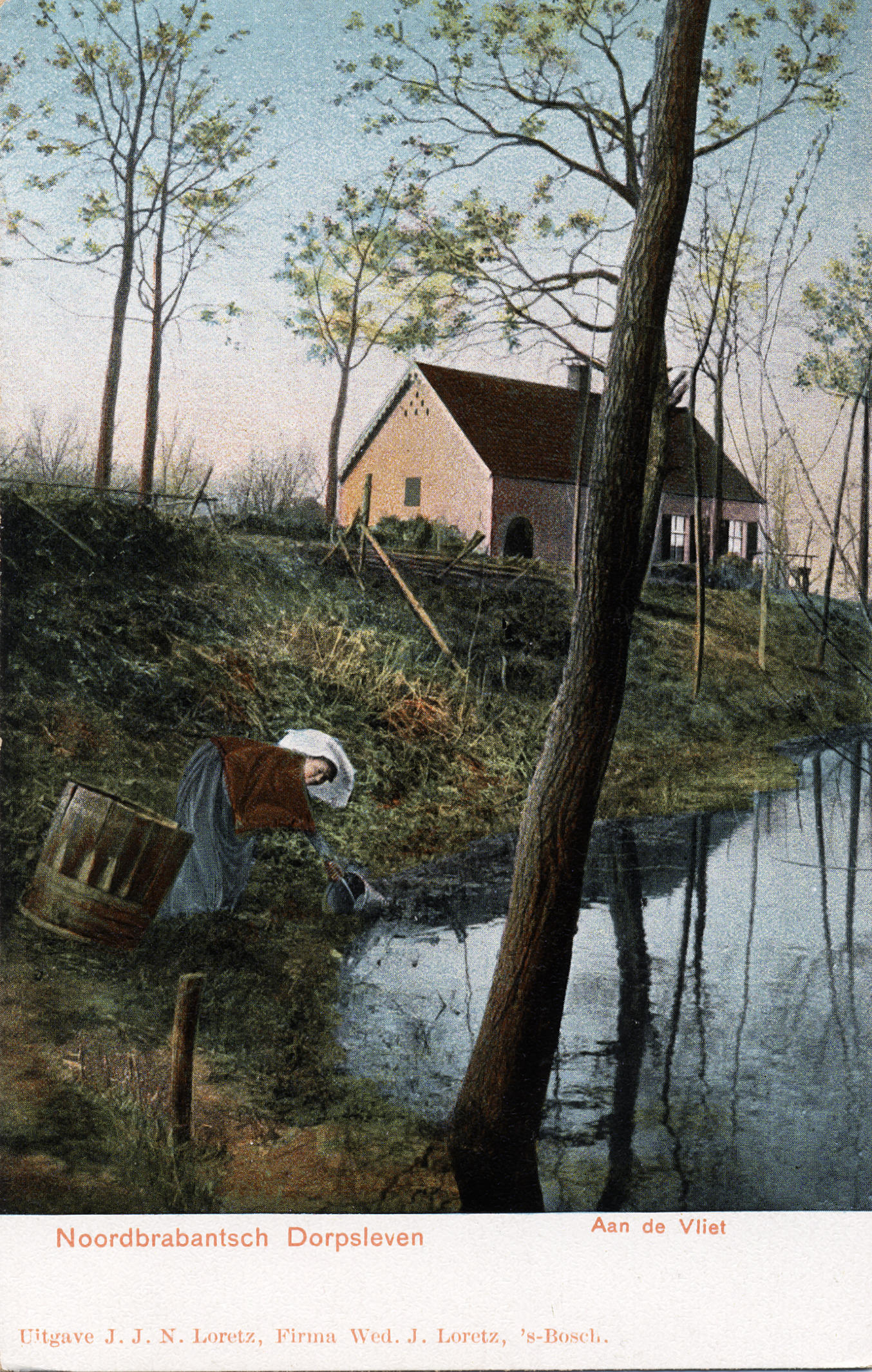 Vrouw in Noord-Brabantse dracht aan de waterkant, Oi...