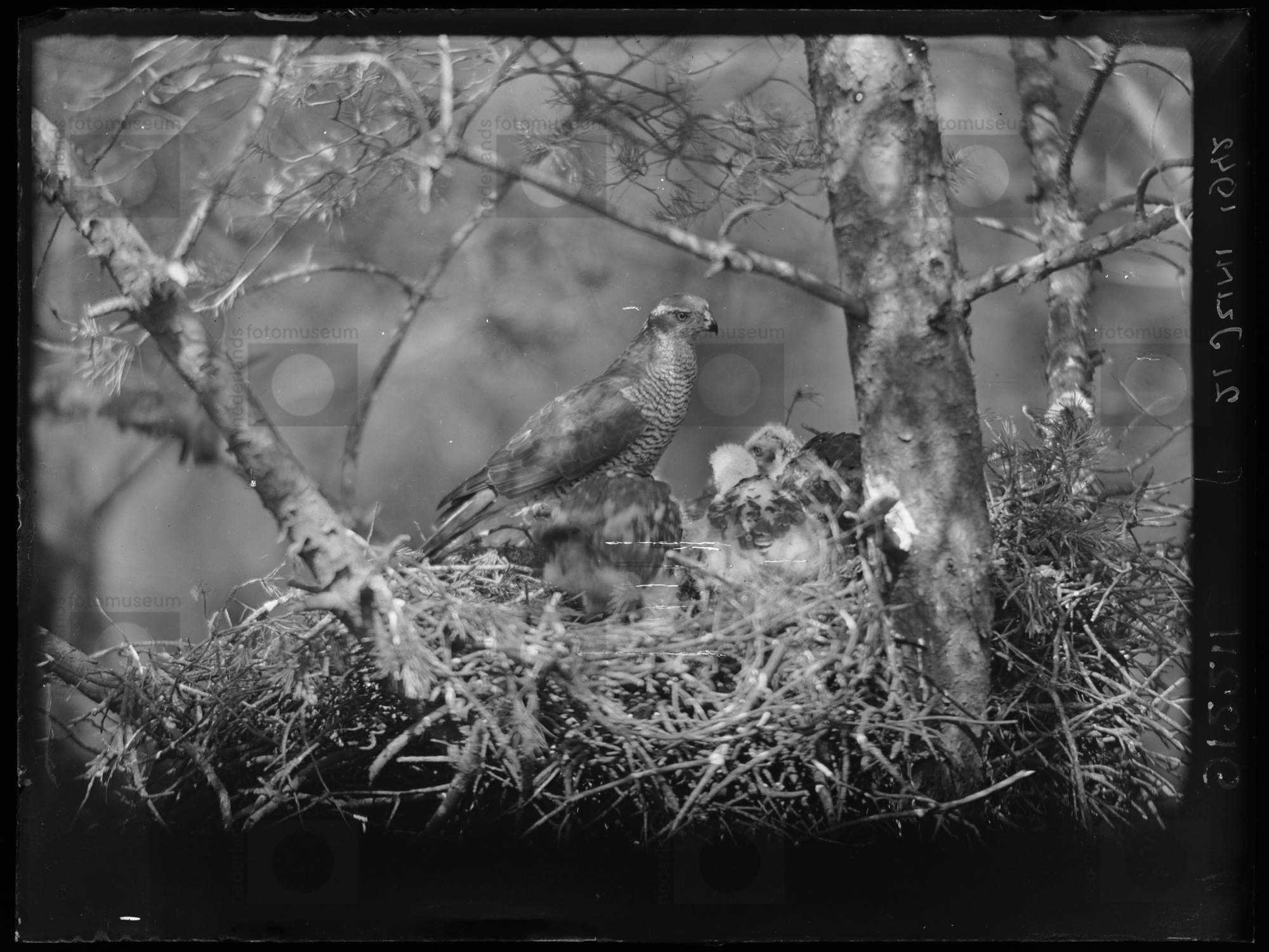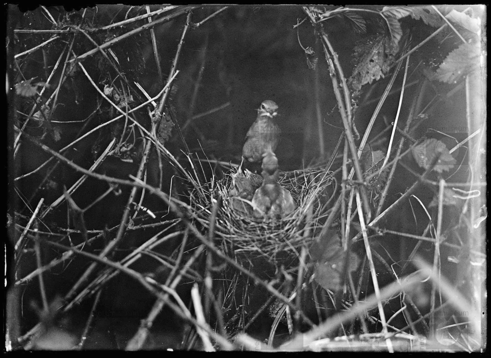 Tuinfluiter met voer bij jongen in nest, Voorst (1918)