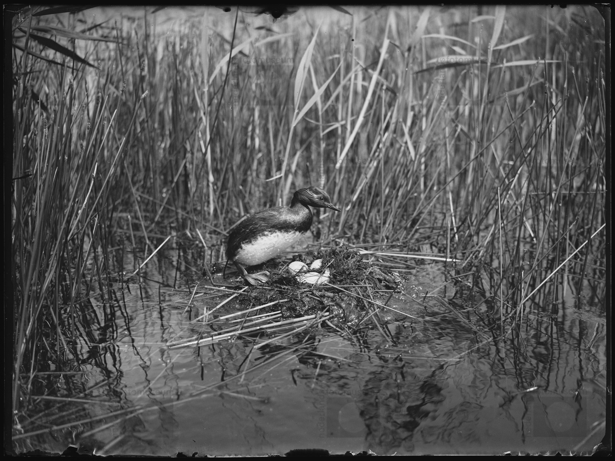 Nest van Fuut met bedekte eieren, Wanneperveen (1931)