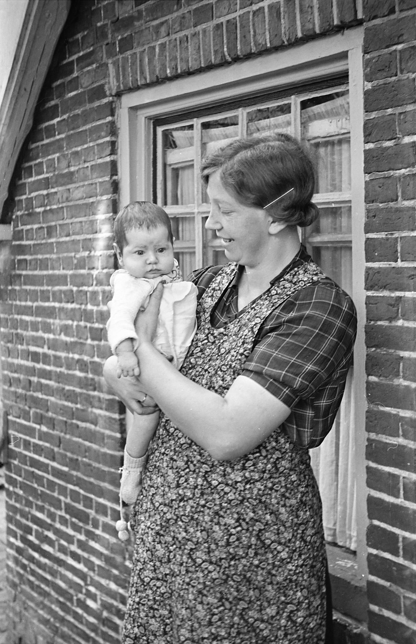Vrouw met kind, Vriezenveen, 1947 (zwart-wit negatief)