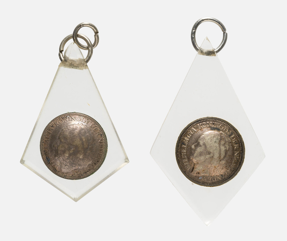 Paar oorbellen vervaardigd van plexiglas en Nederlan...