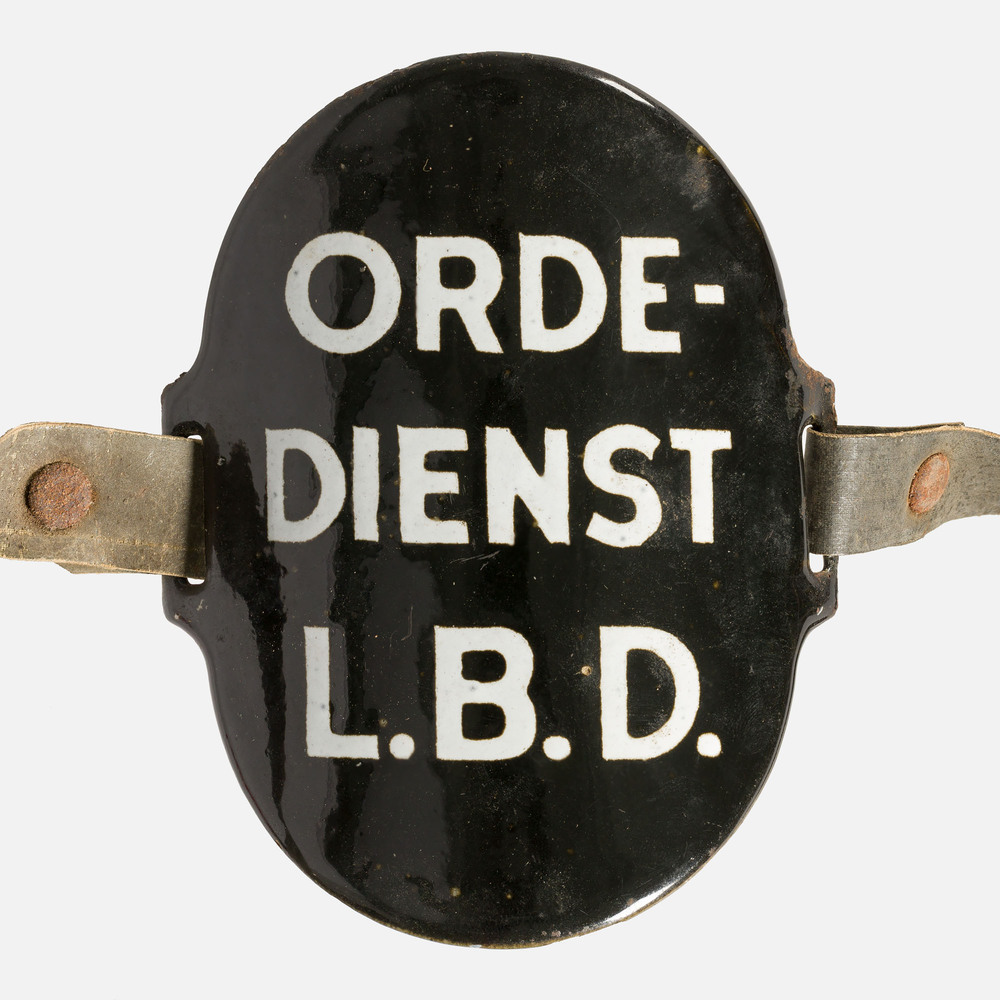 Ovaal zwart mouwschild voor de ordedienst van de Luc...