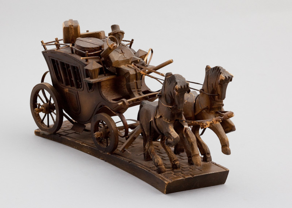 Cilinderspeeldoos in vorm van een diligence