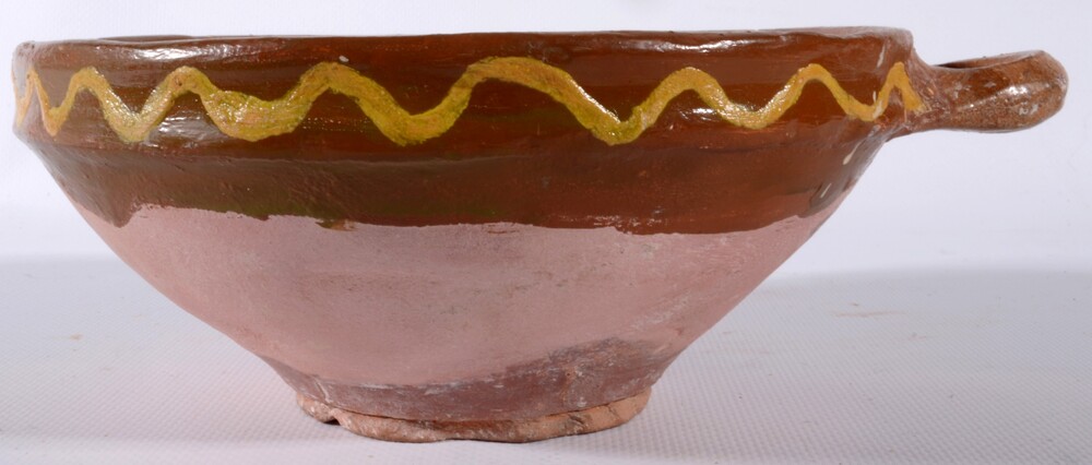 Kom voorzien van slibdecoratie gemaakt van slibaarde...