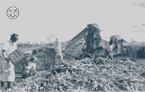 Op de combine: Wim van der Geest; hr. Rietjens. Op de trekker: Gerard Eijsink sr. (2)