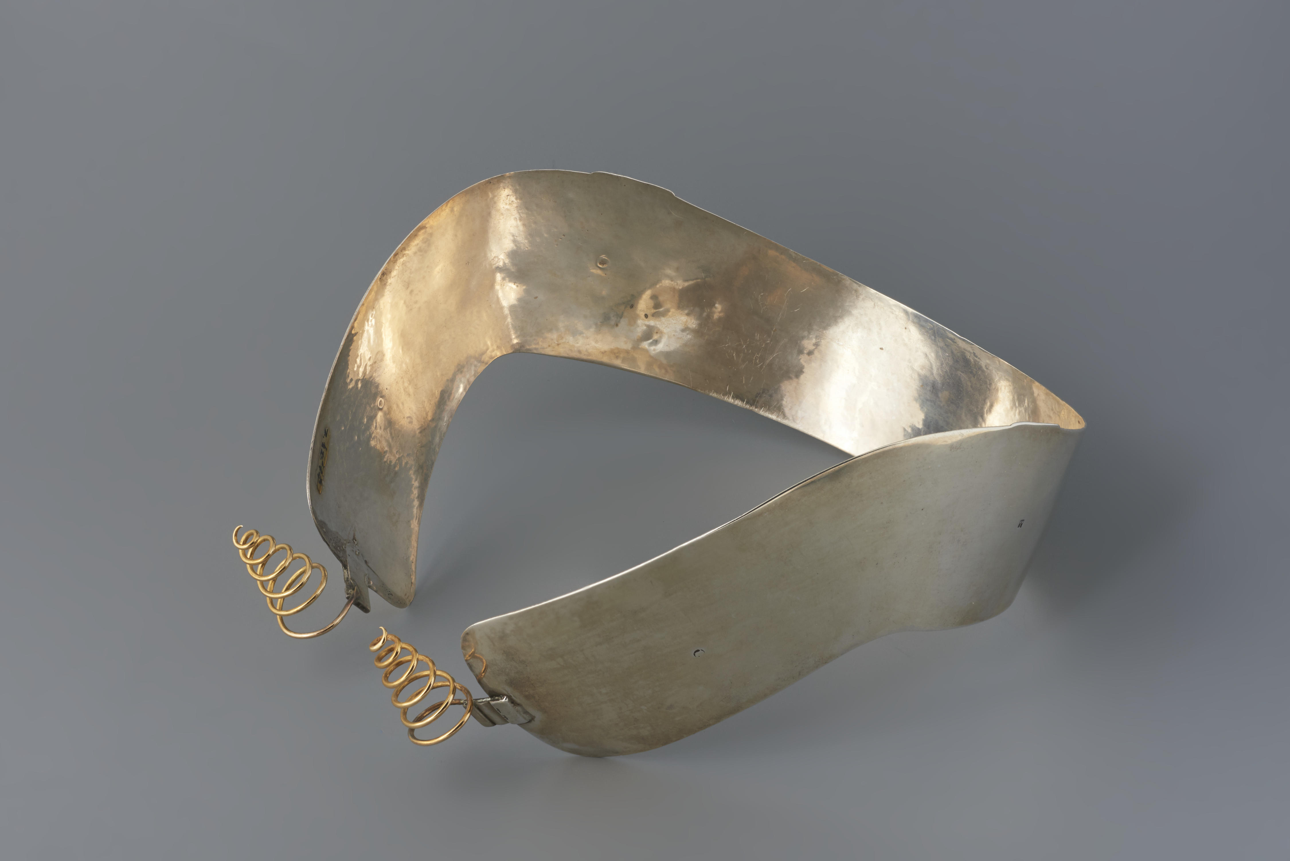 Zilveren oorijzer met gouden krullen, Staphorst-Rouv...