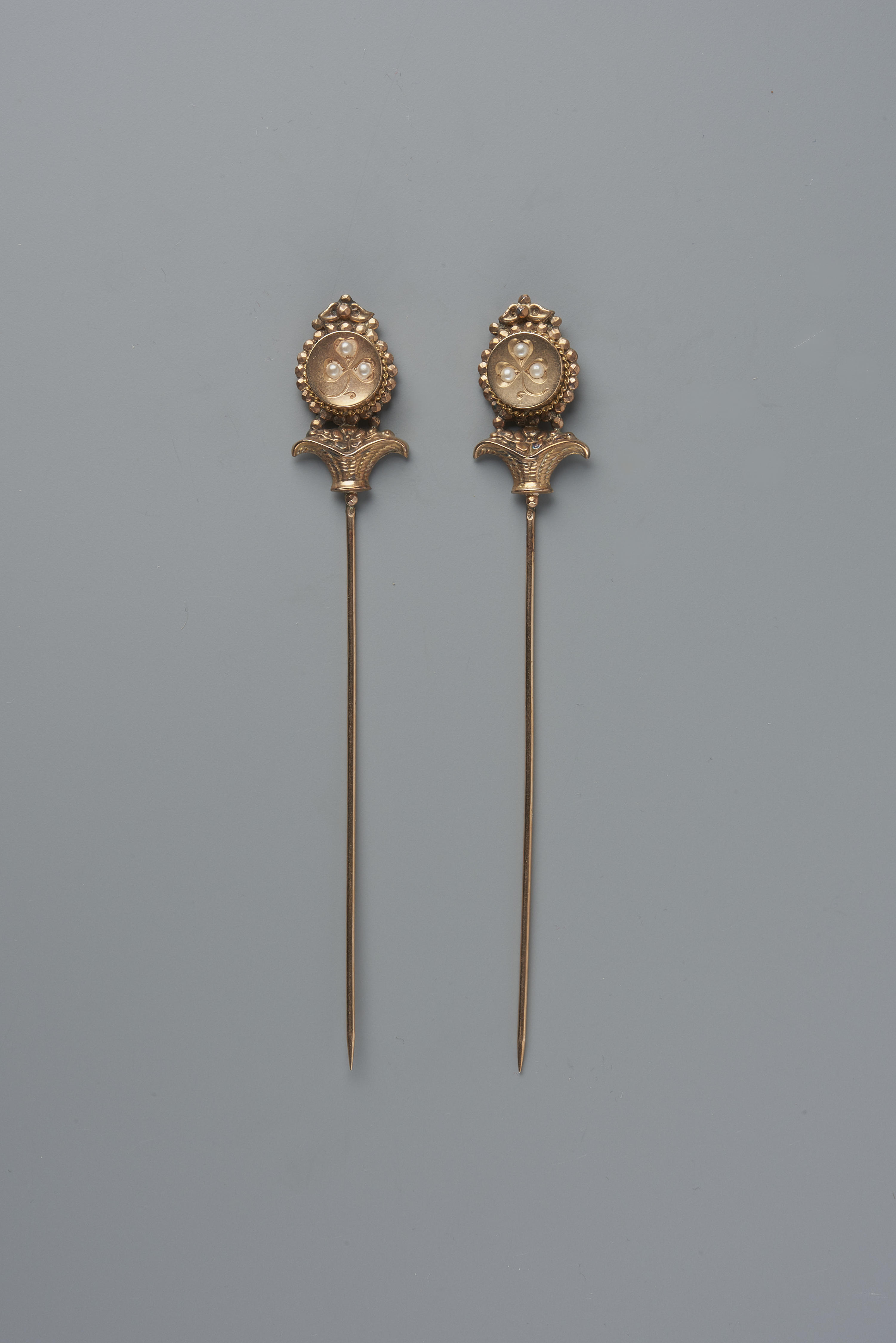 Paar gouden spelden, provincie Zeeland, circa 1880