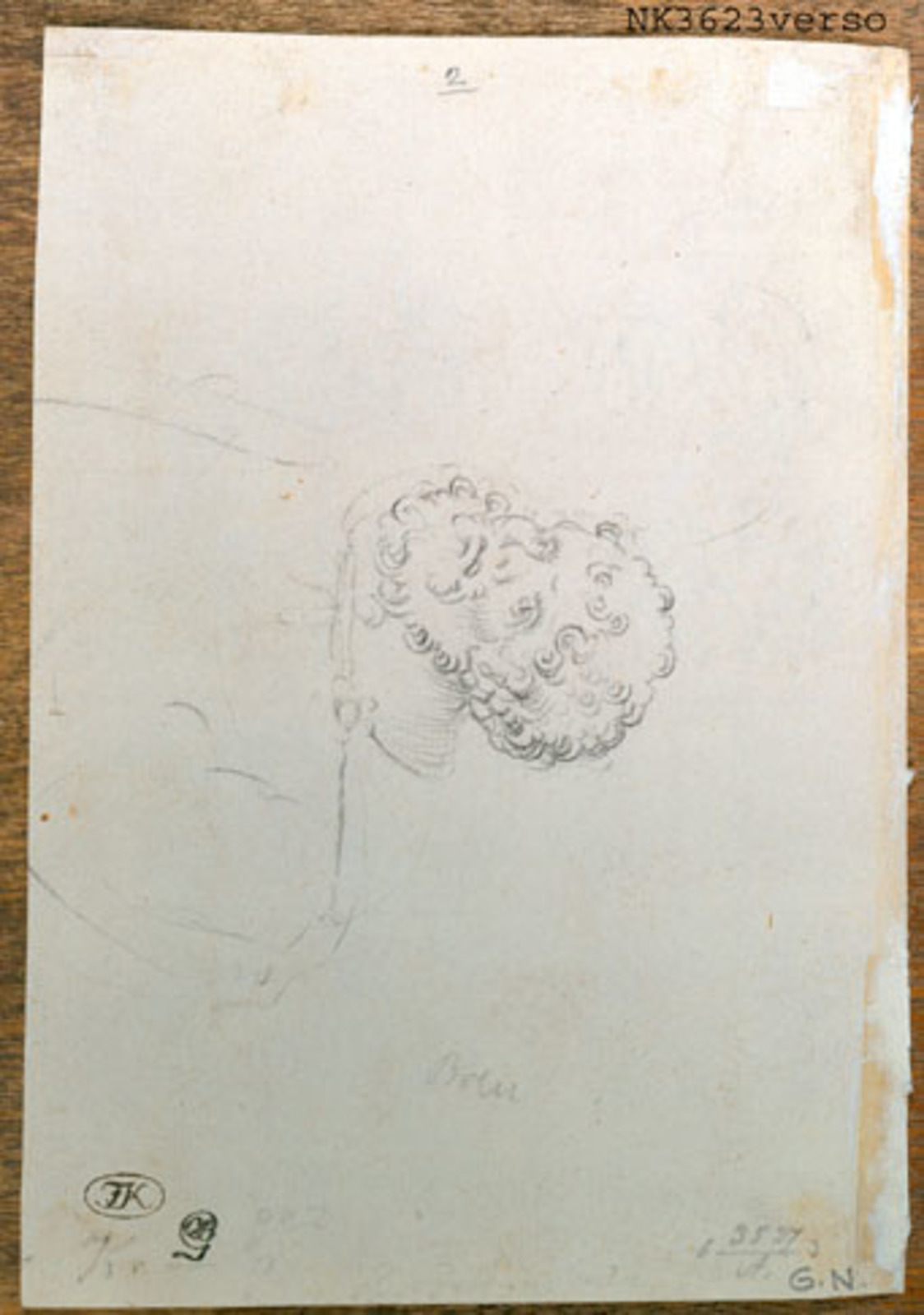 Hoofd van een onthoofde man en trois-quarts, naar li...
