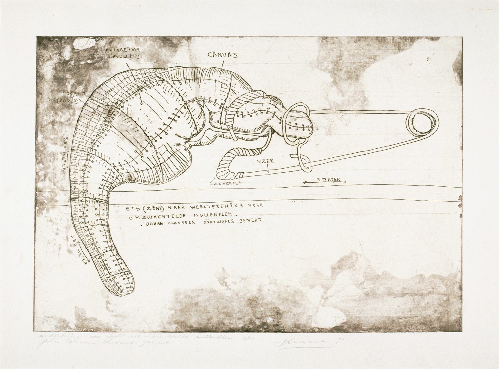 Werktekening voor objekt met omzwachtelde mollenklem