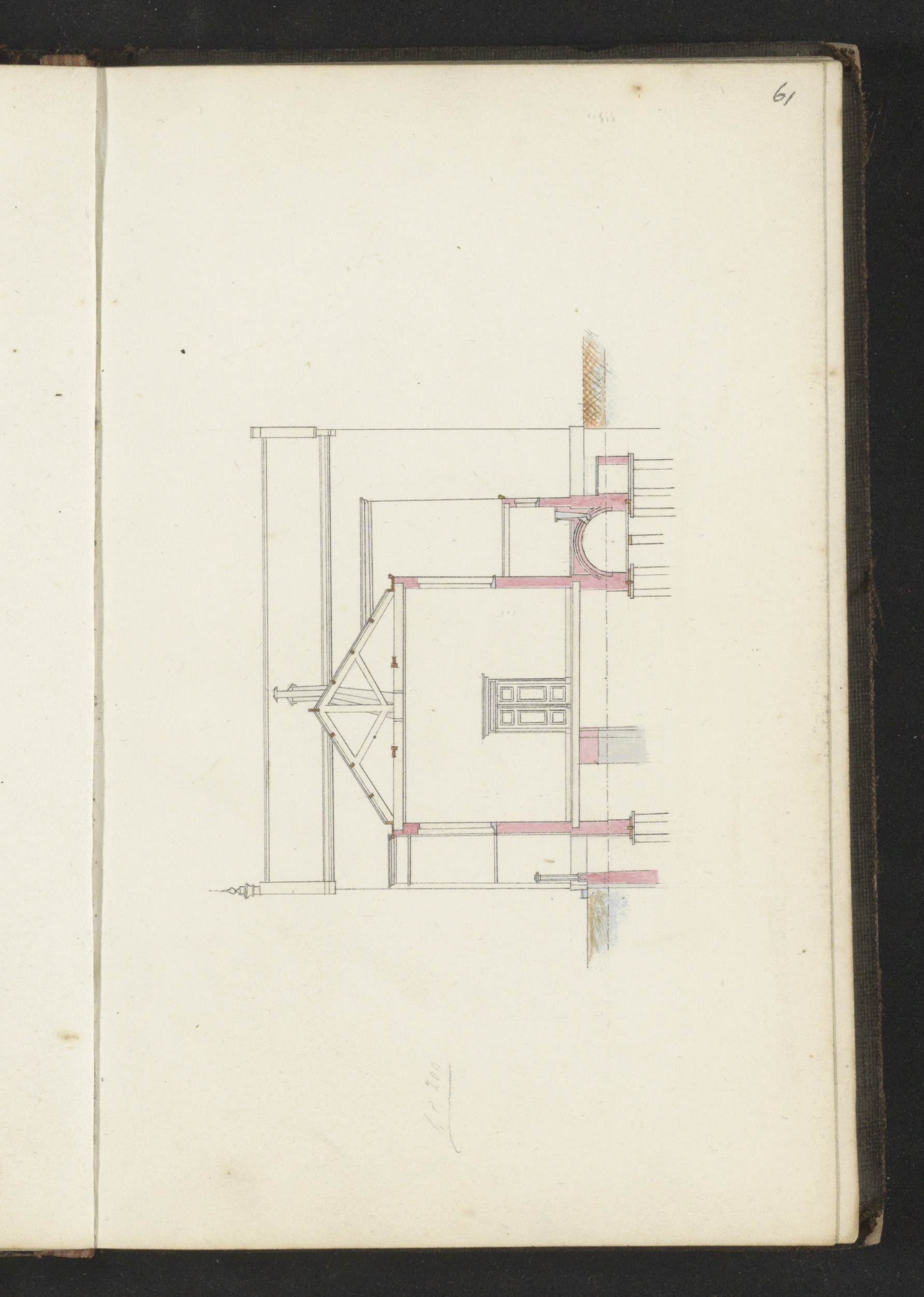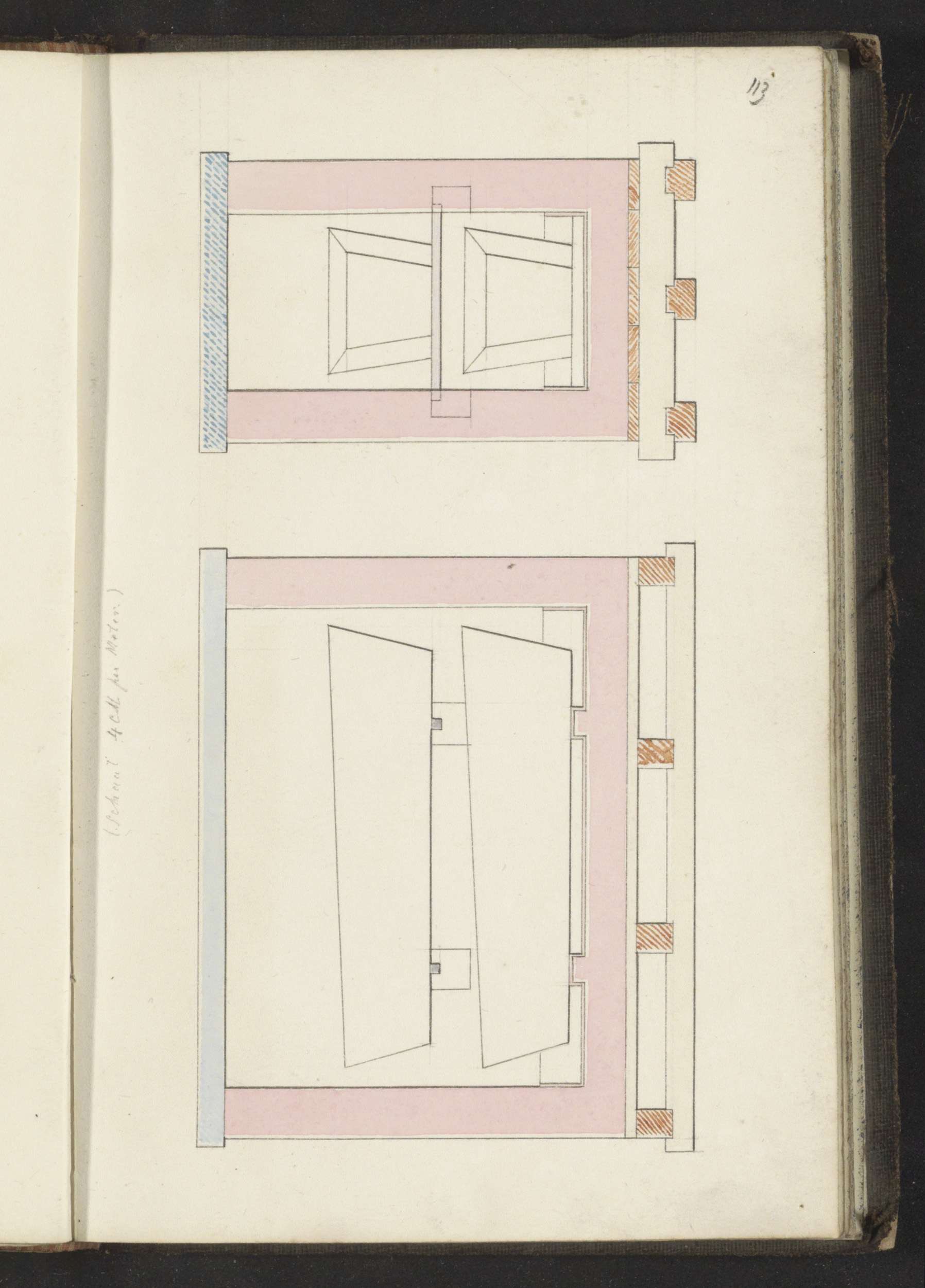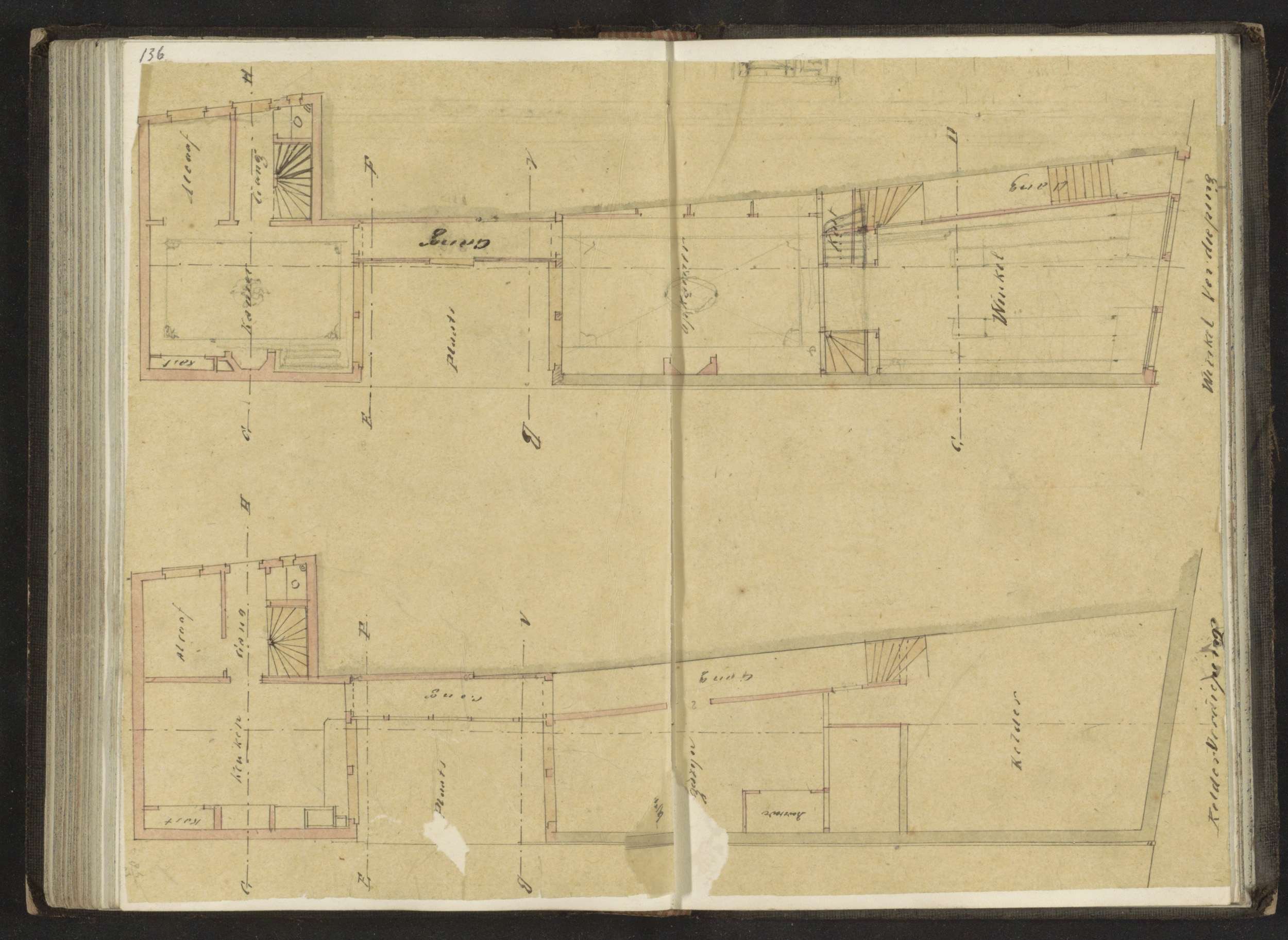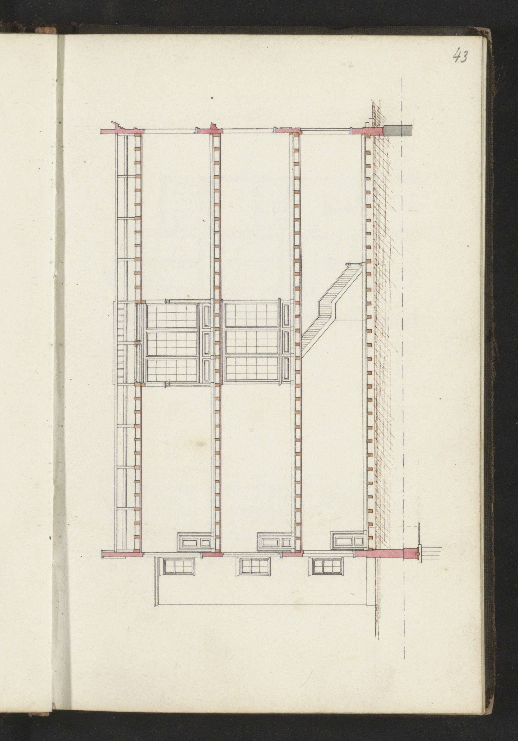 Opstand van een voorgevel en een dwarsdoorsnede van ...