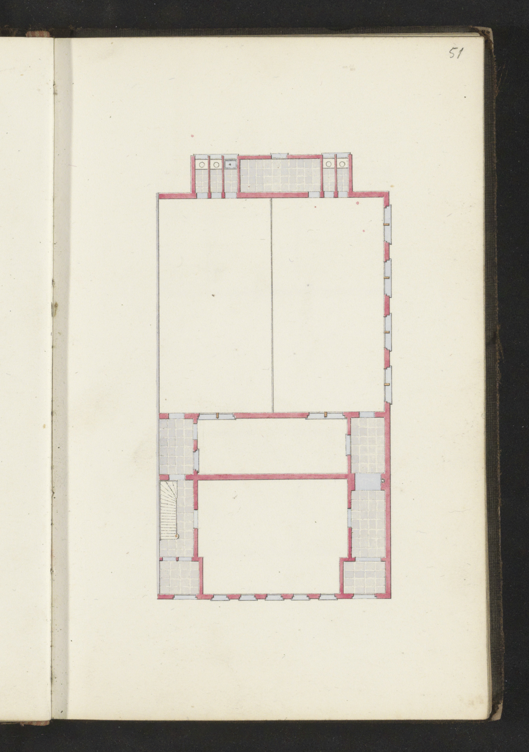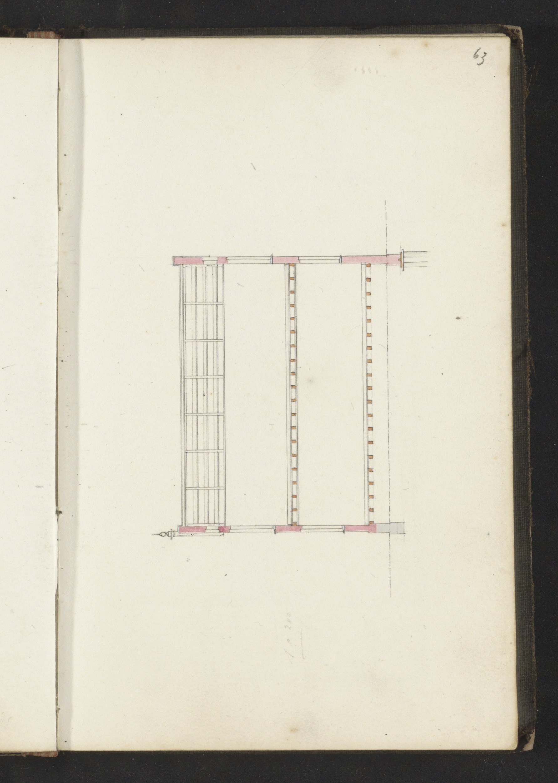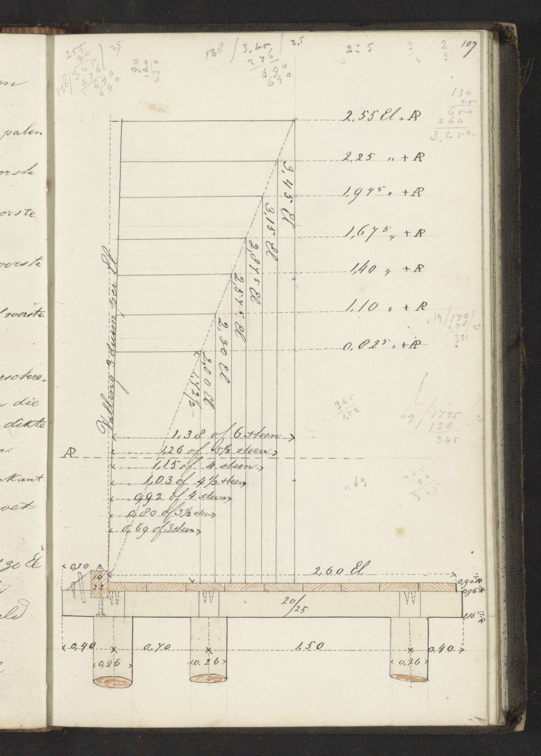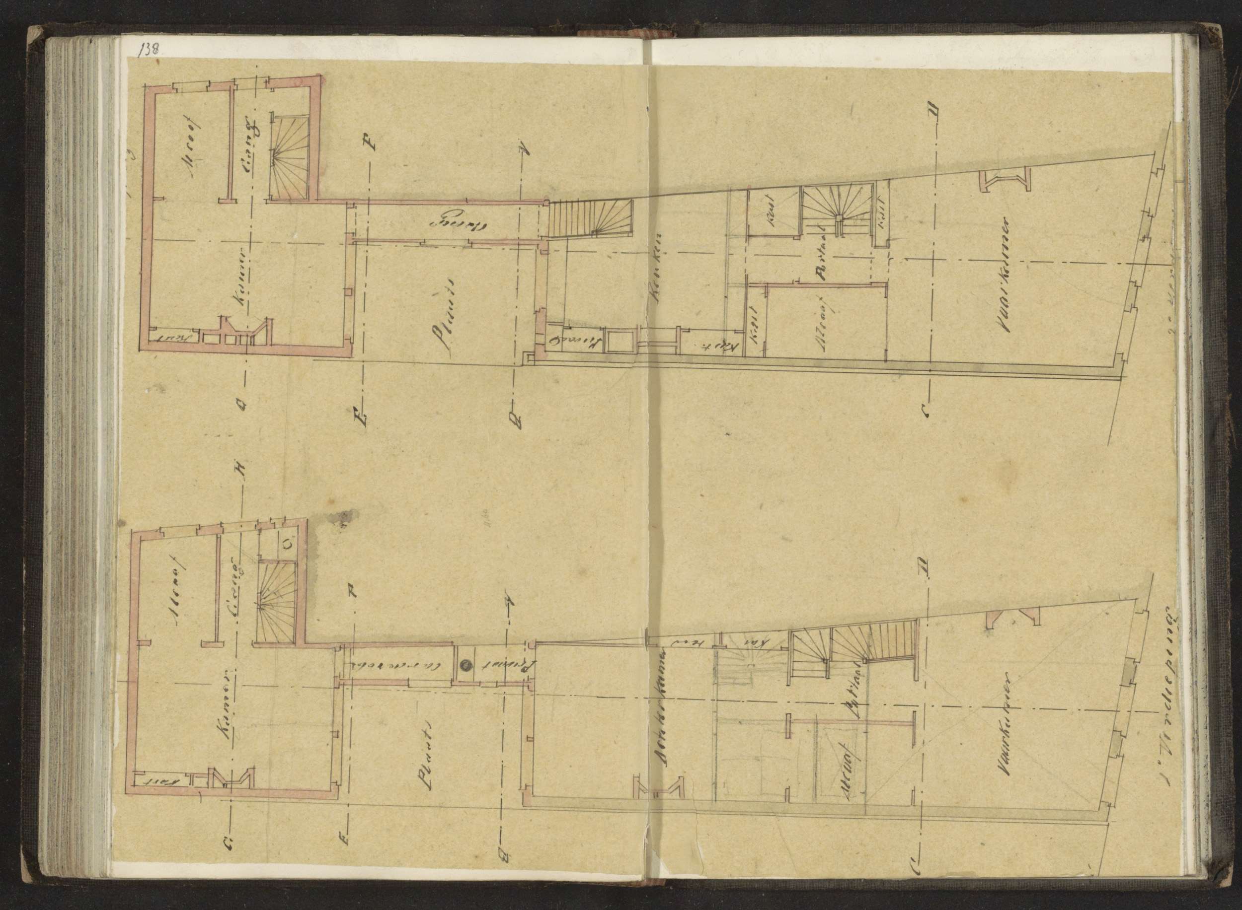 Opstand van een voorgevel en een dwarsdoorsnede van ...