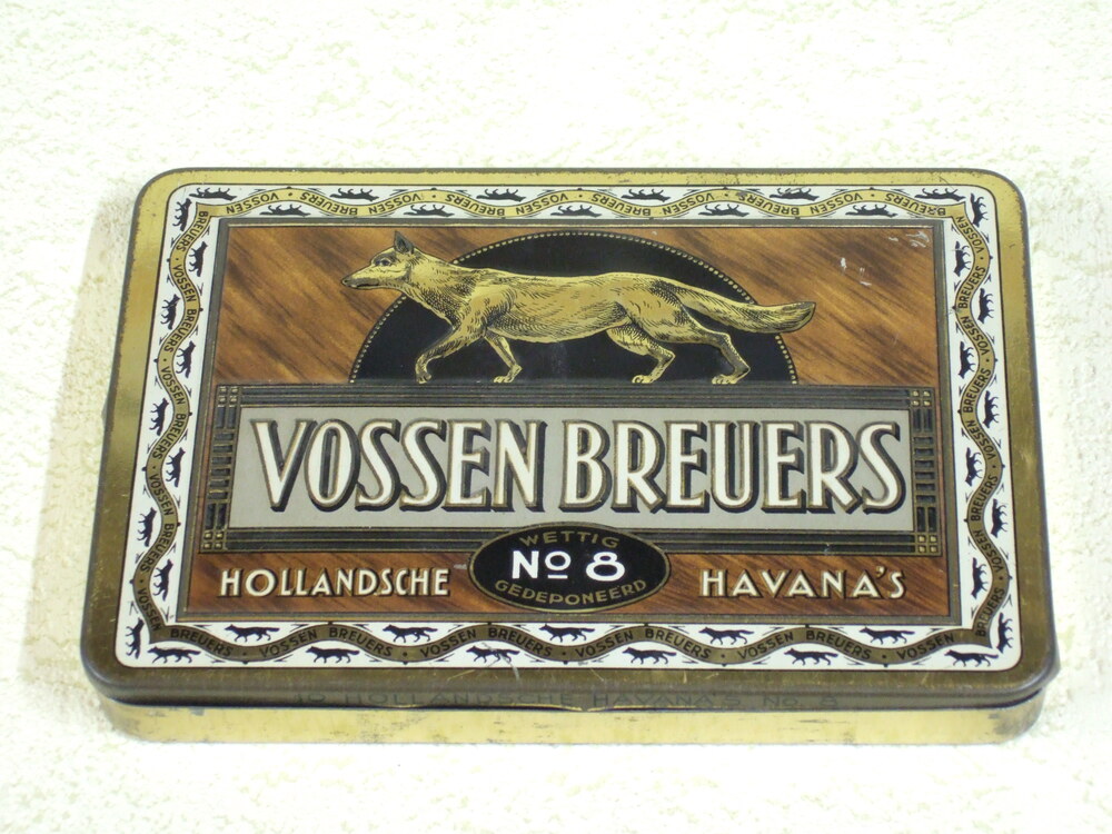 Sigarenblik met opdruk van het merk Vossen Breuers.