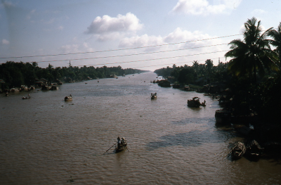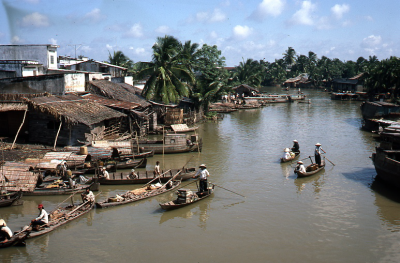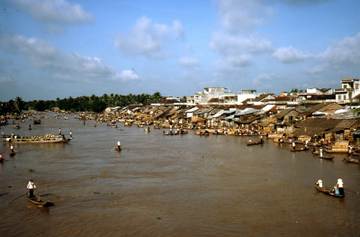 Stad aan het water in de Mekongdelta in Vietnam, 198...