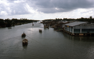 Rivier in de Mekongdelta in Vietnam, 1987. Op het wa...