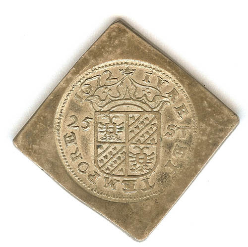 25 stuiver noodgeld, op vierkant plaatje zilver, met...
