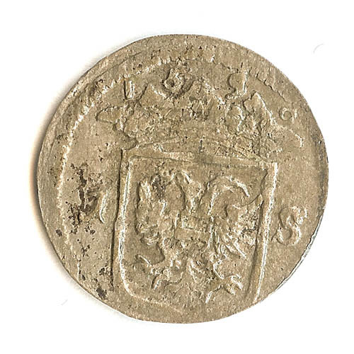 Zes stuiver stuk, 6 stuivers, met op voorzijde gekro...