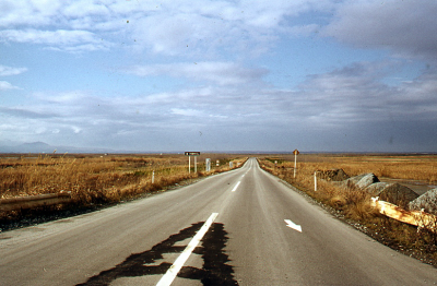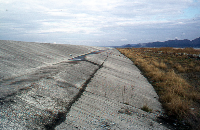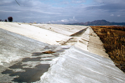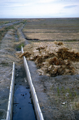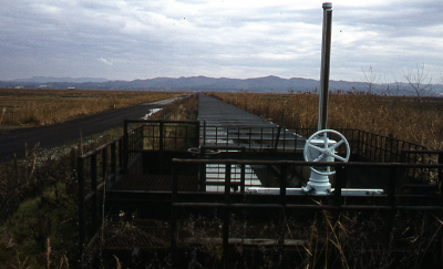 Irrigatiekanaal in de polder Hachirogata in Japan.