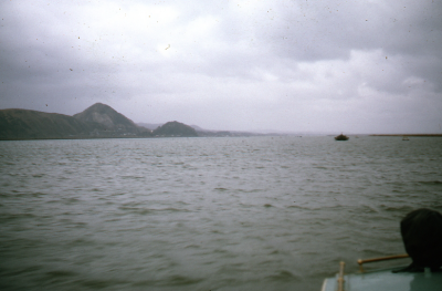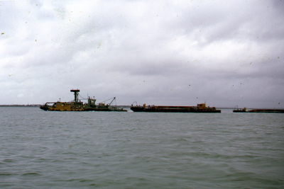 Baggerschip en andere vaartuigen op het randmeer ron...