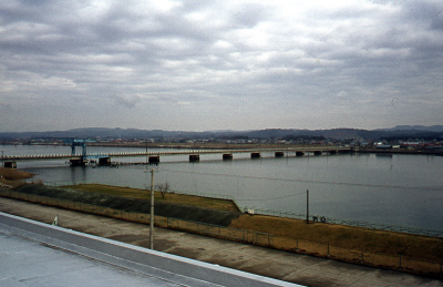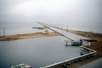 Uitwateringssluis en brug bij de polder Hachirogata ...