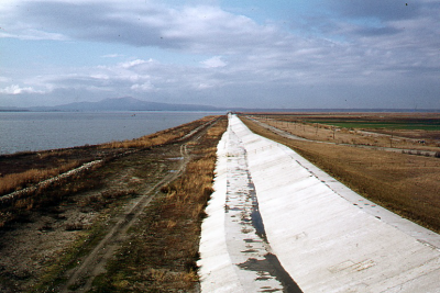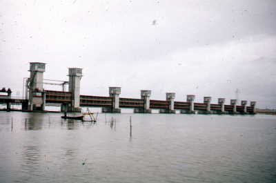 Uitwateringssluis van de polder Hachirogata in Japan.