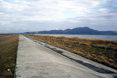 Ringdijk van de polder Hachirogata in Japan gezien v...