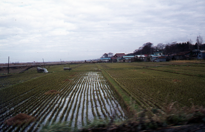 Huizen in de polder Hachirogata in Japan, vermoedeli...