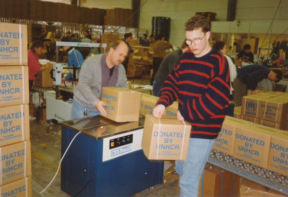 Collecteren voor het crisiscomité. Groepsfoto voor h...