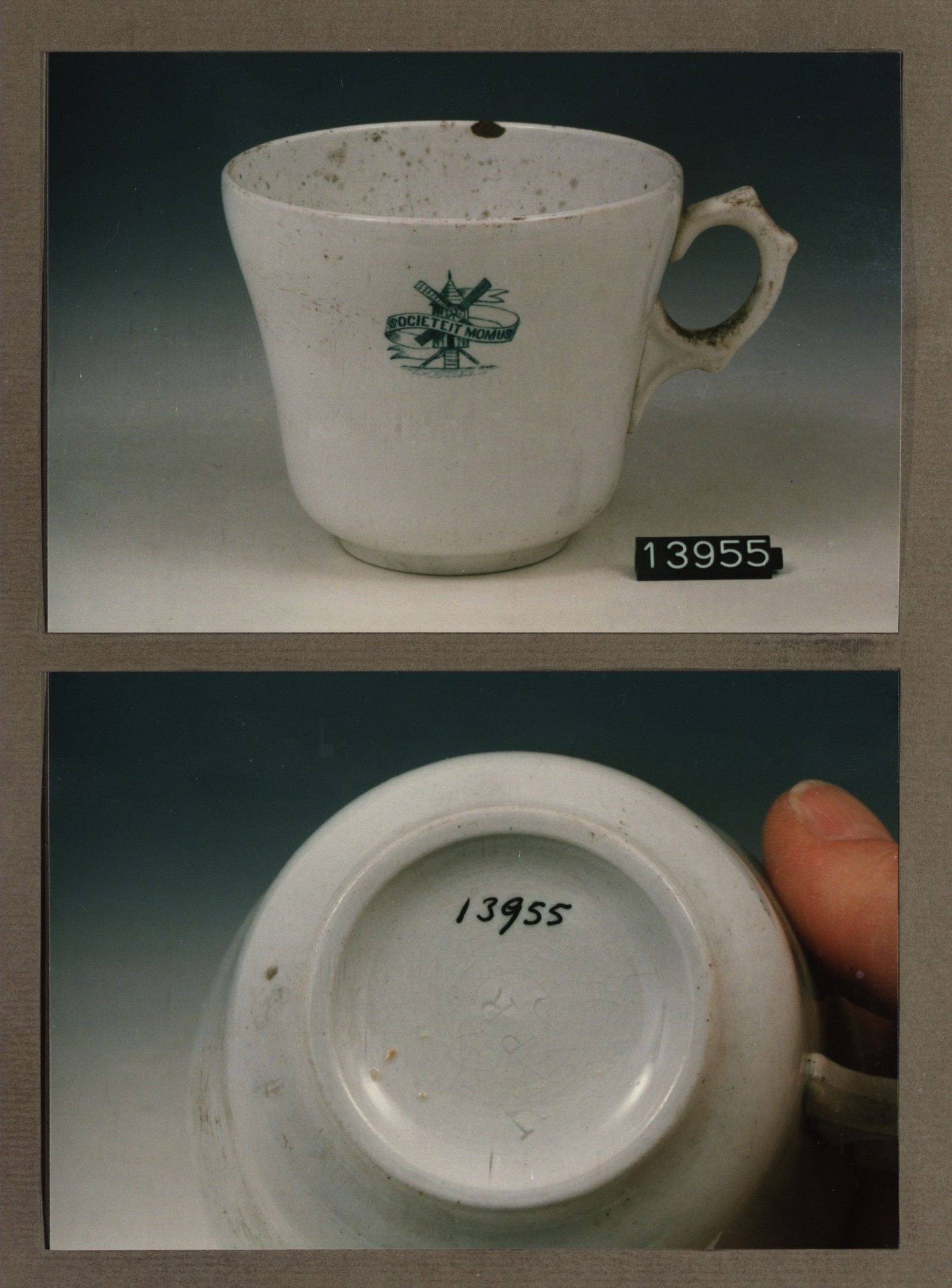 Kop met opschrift met decor Societeit Momus