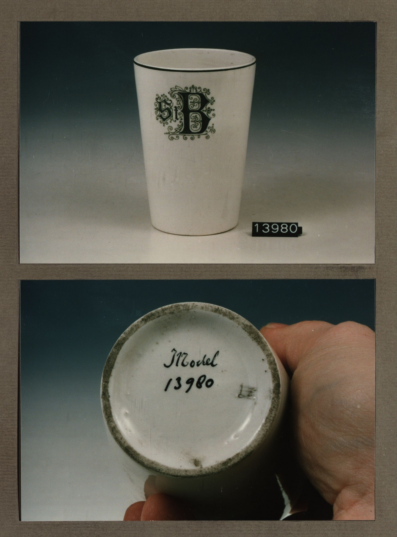 Beker met opschrift met decor St.B