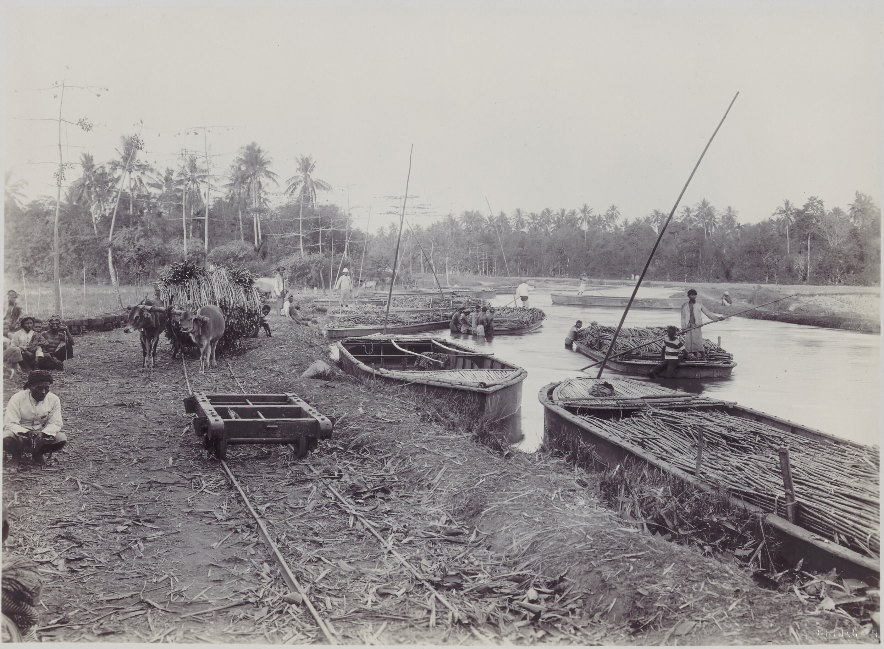 Ox-wagons with sugar cane at the sugar factory Ketegan