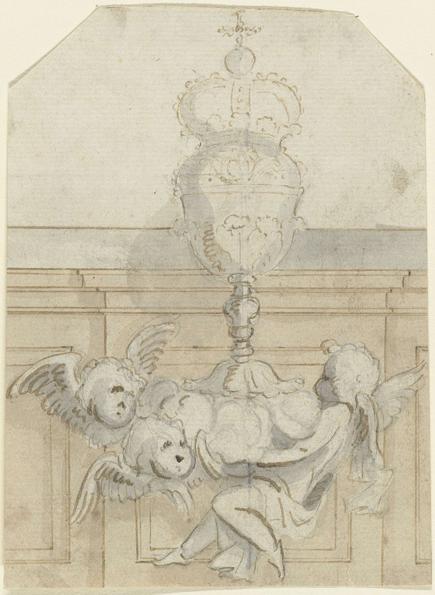 Putto en cherubijnen met pronkbeker
