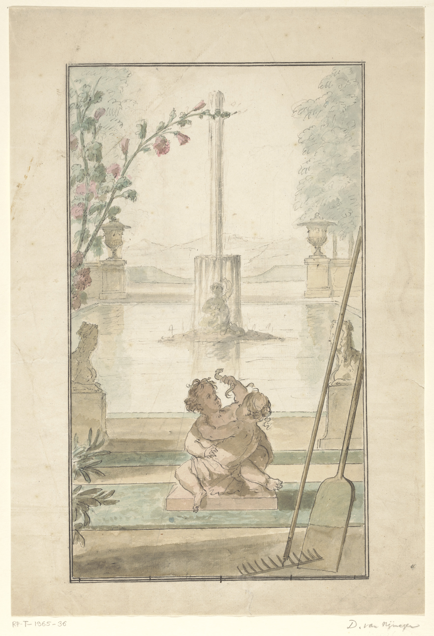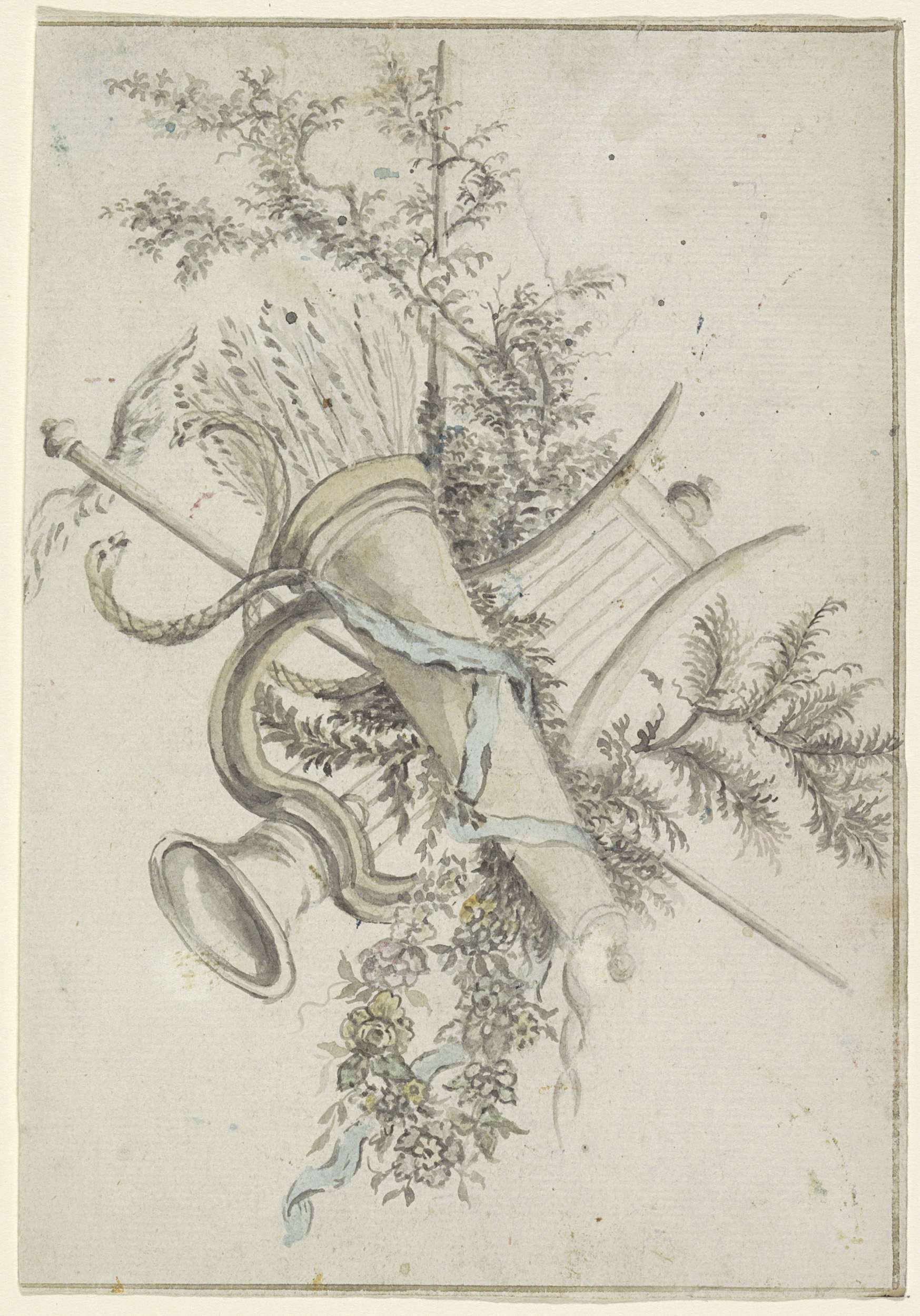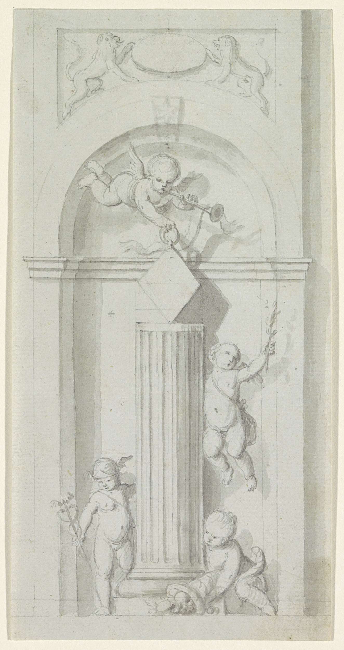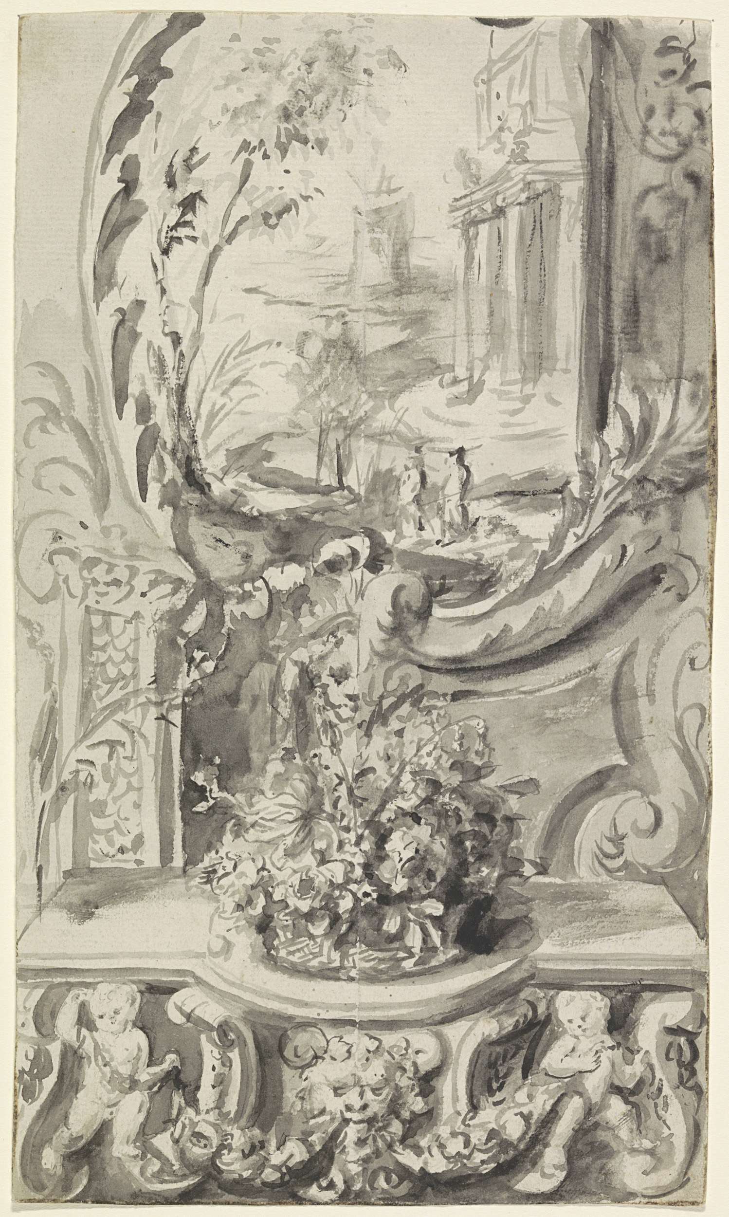 Decoratief ontwerp met putti en bloemen