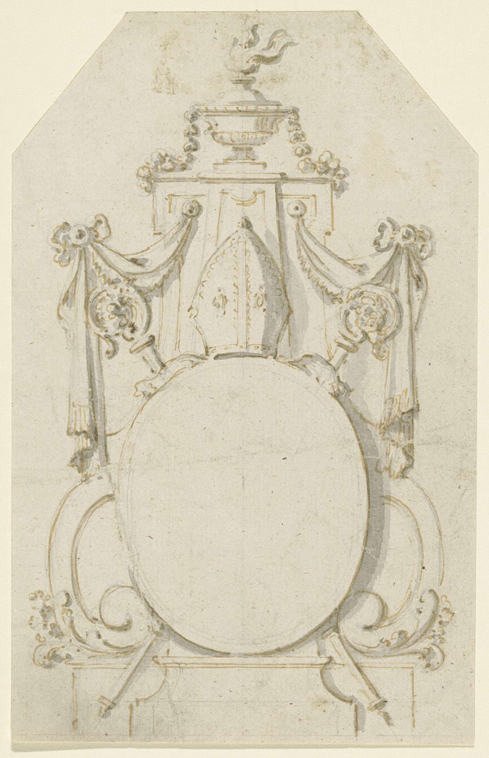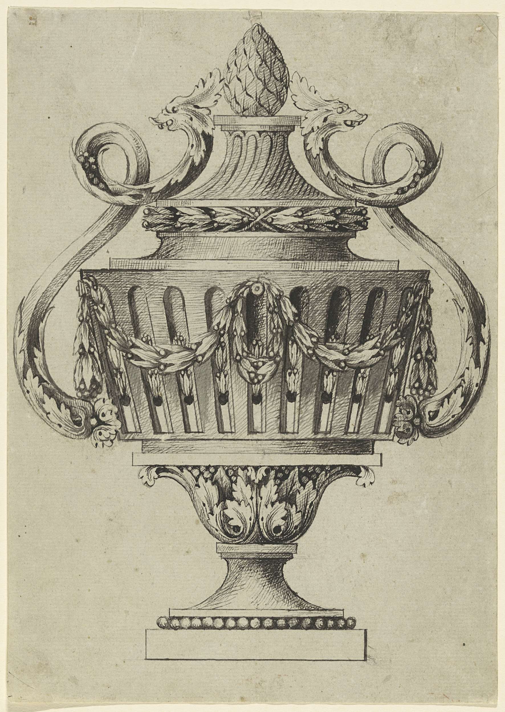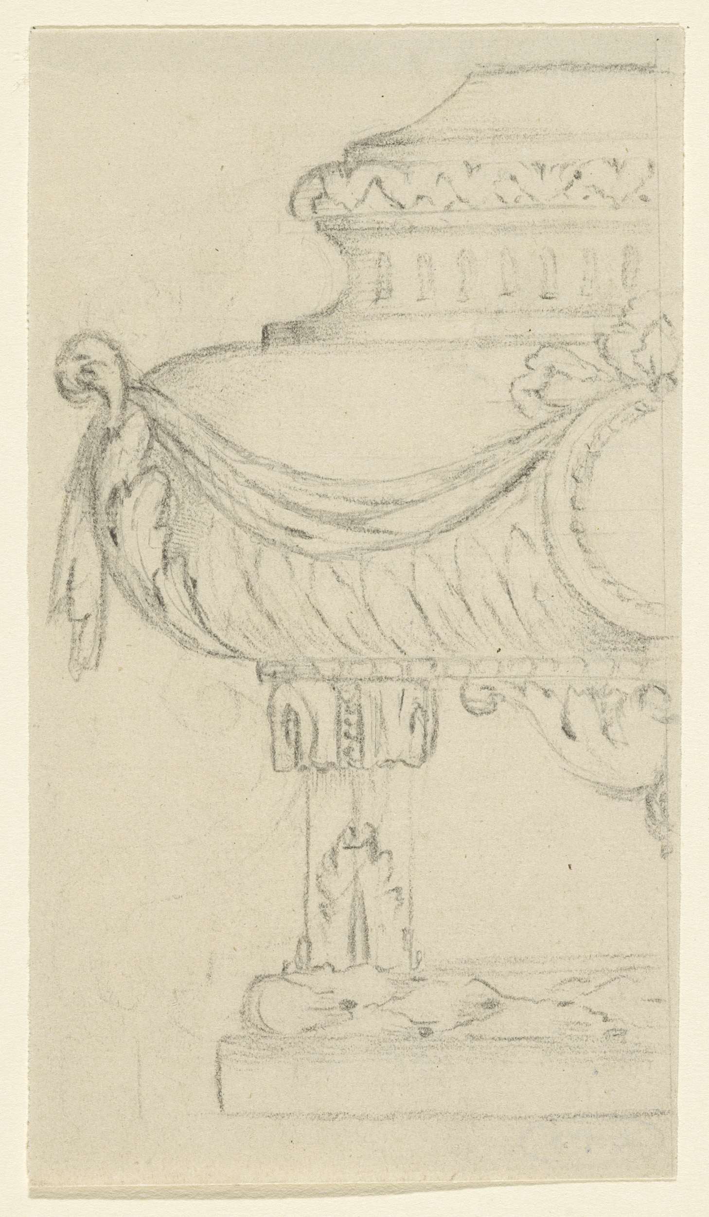 Voetstuk met cherubijn, medaillons en guirlandes