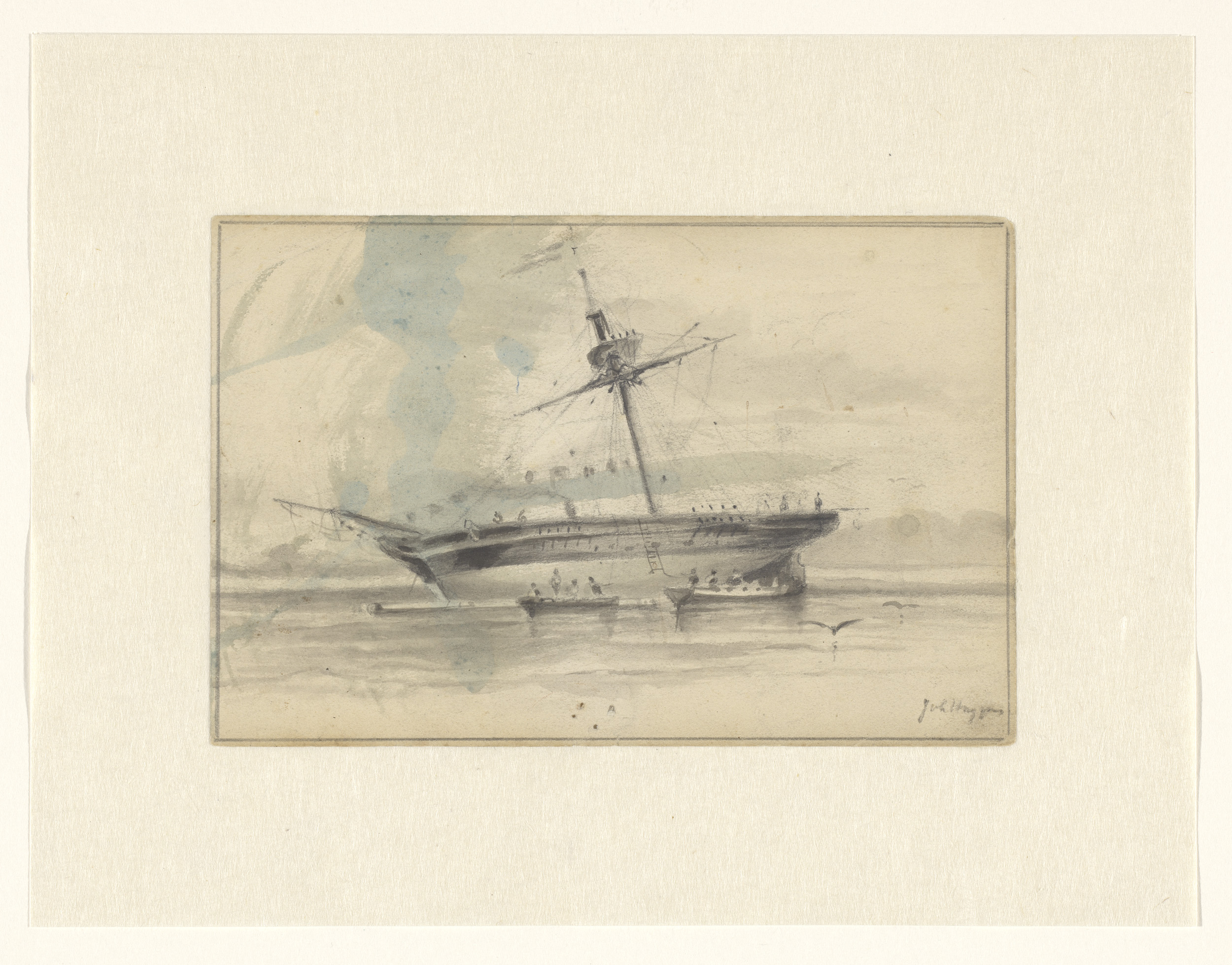 Zeilschip met twee roeiboten