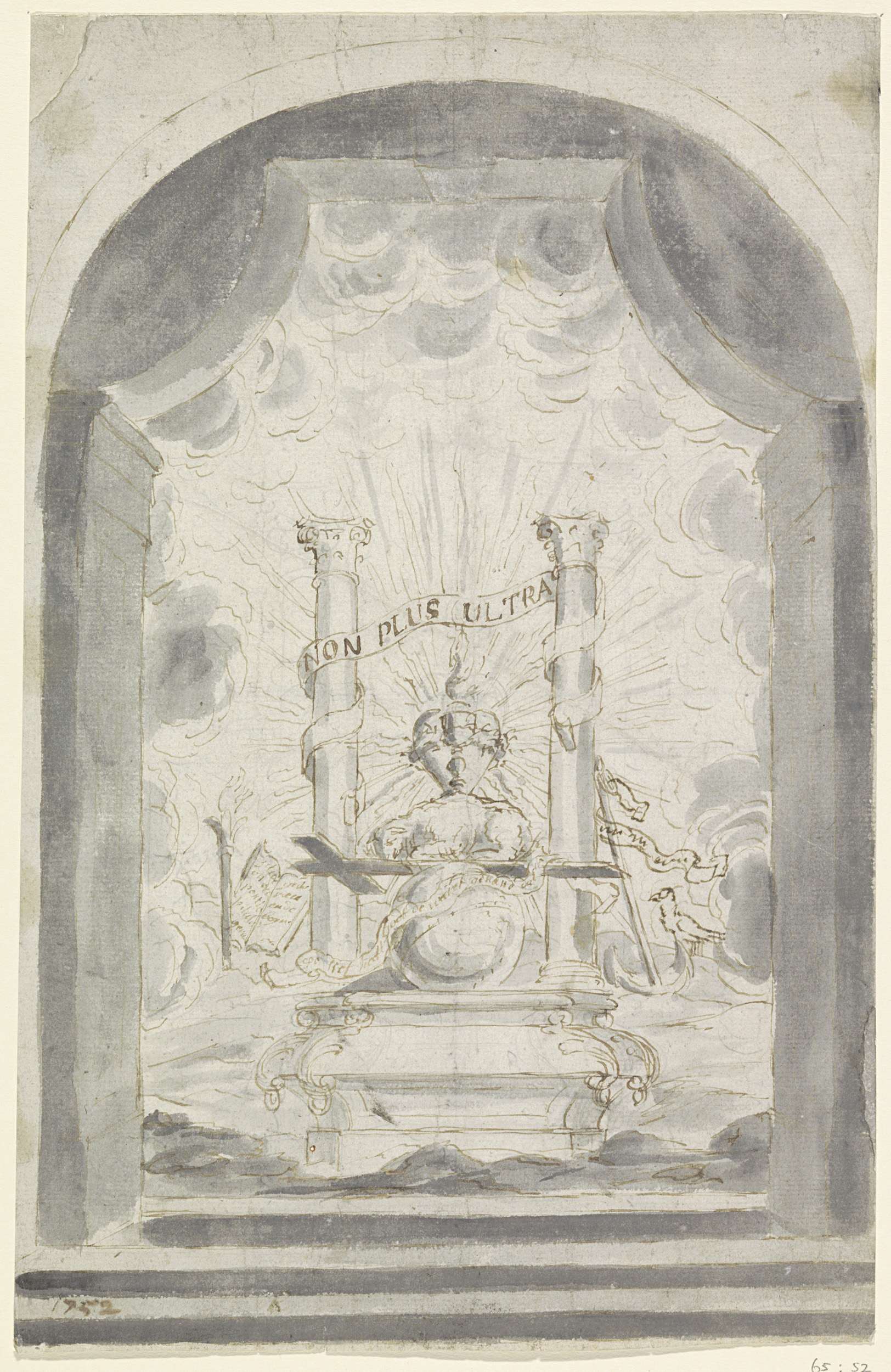 Grafmonument met medaillon, mijter en staven
