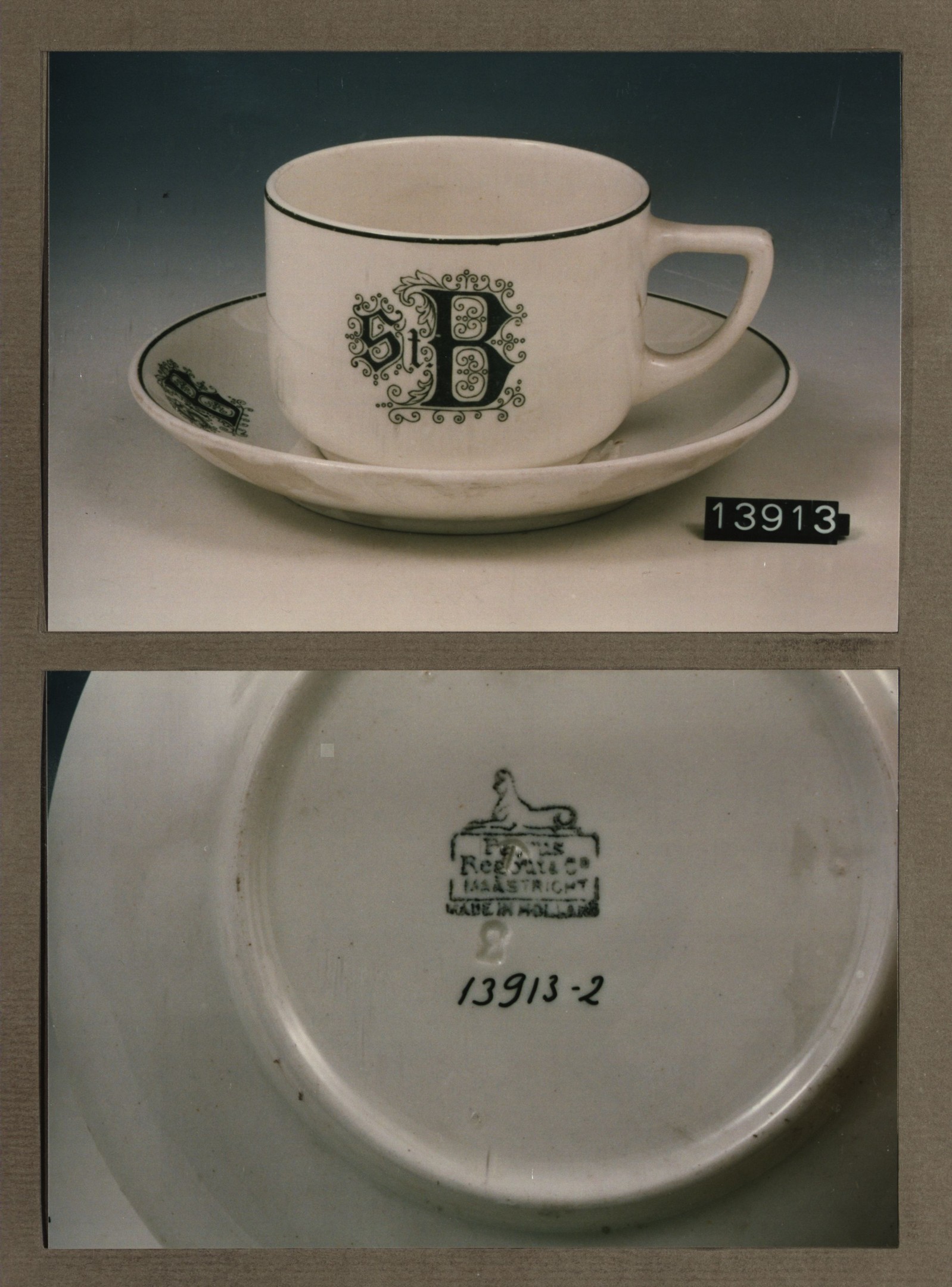 Kop en schotel, model U met decor St. B