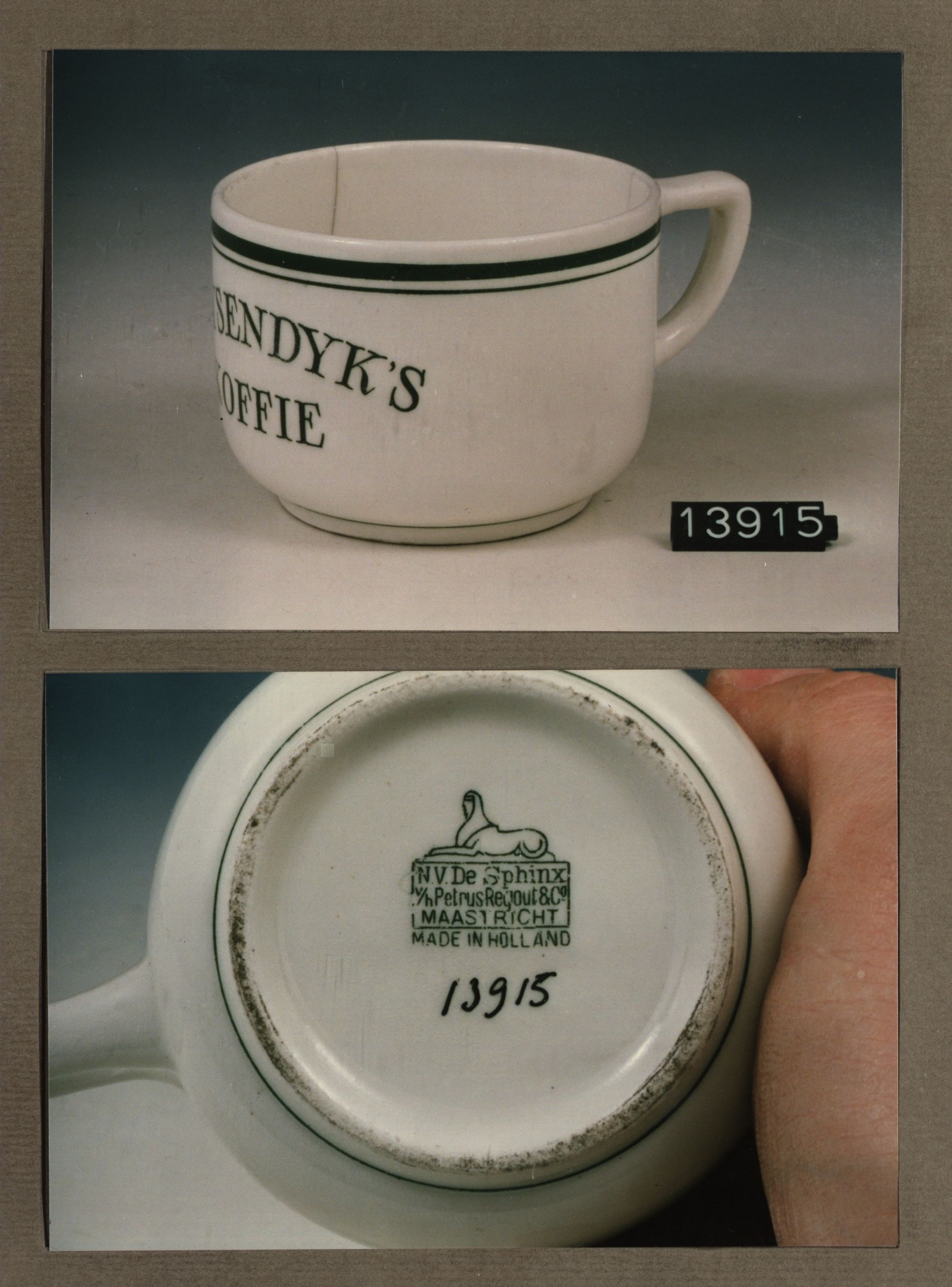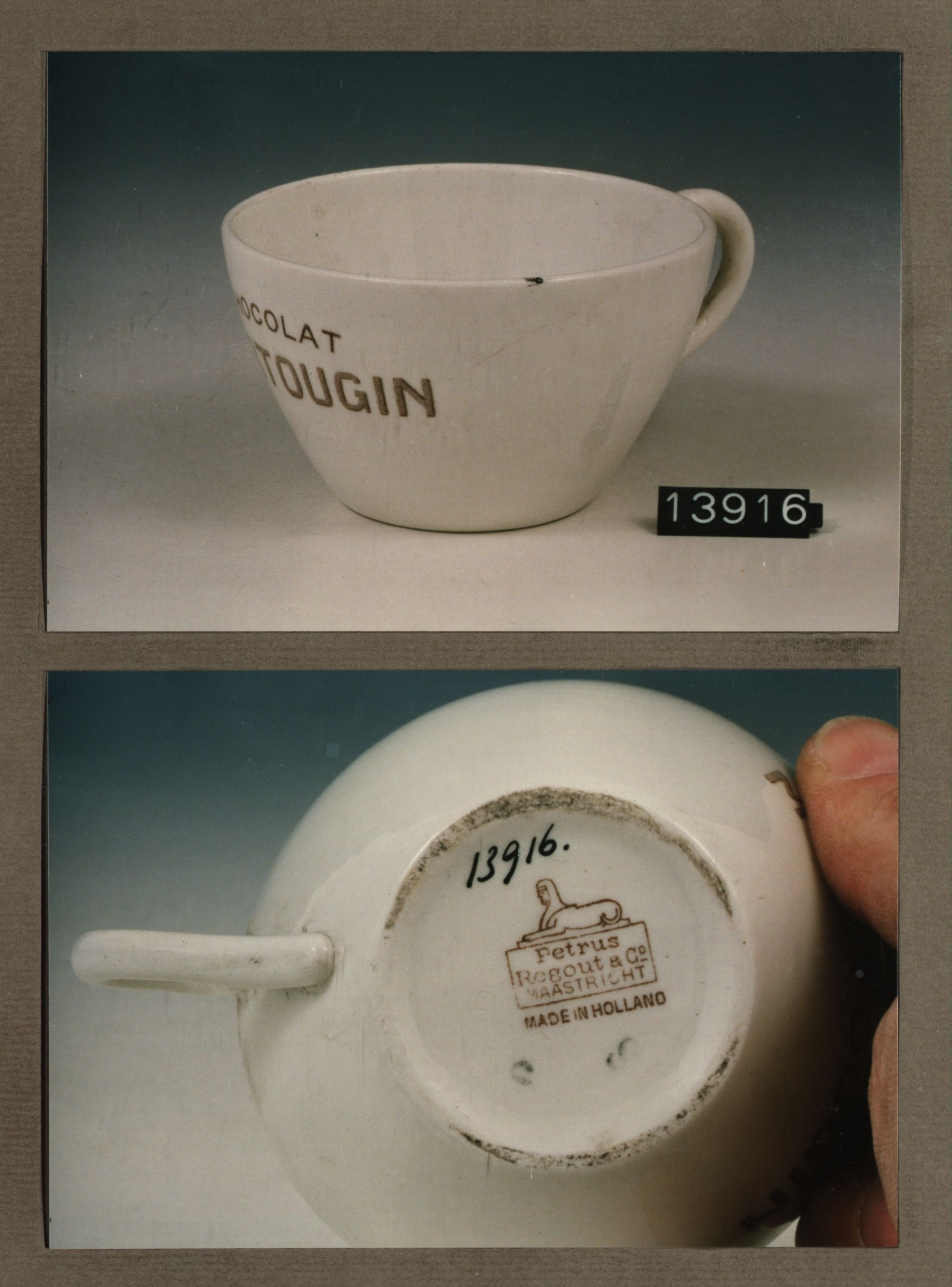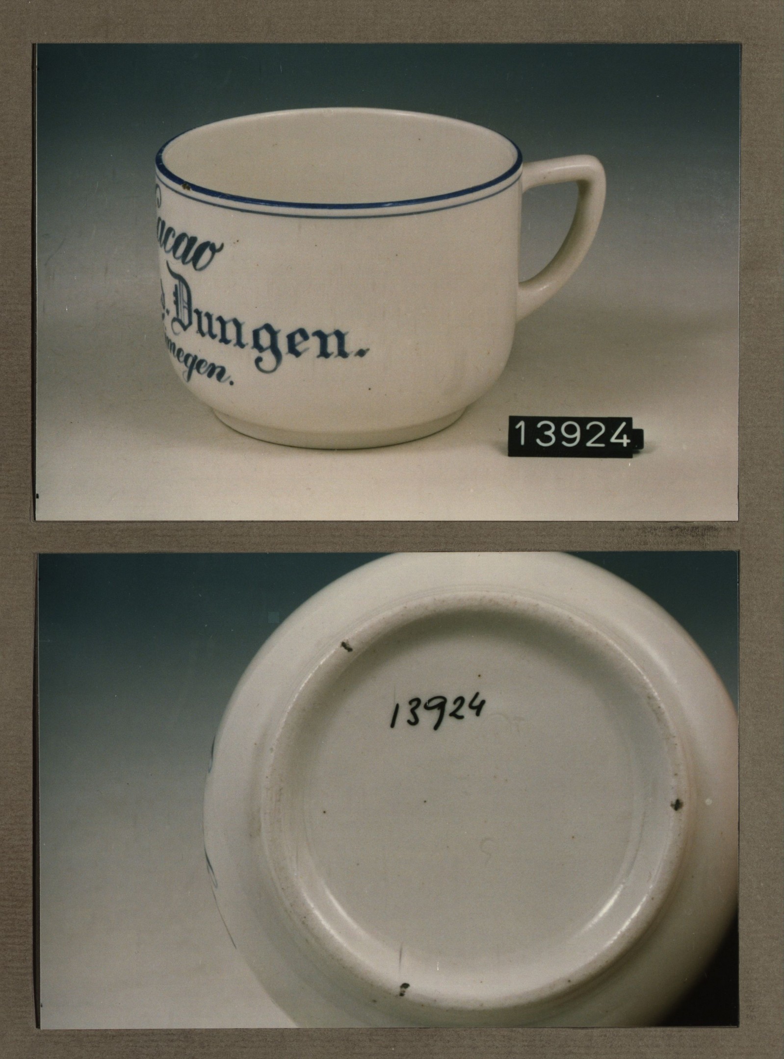 Kop met opschrift, model U met decor Cacao v.d.Dung