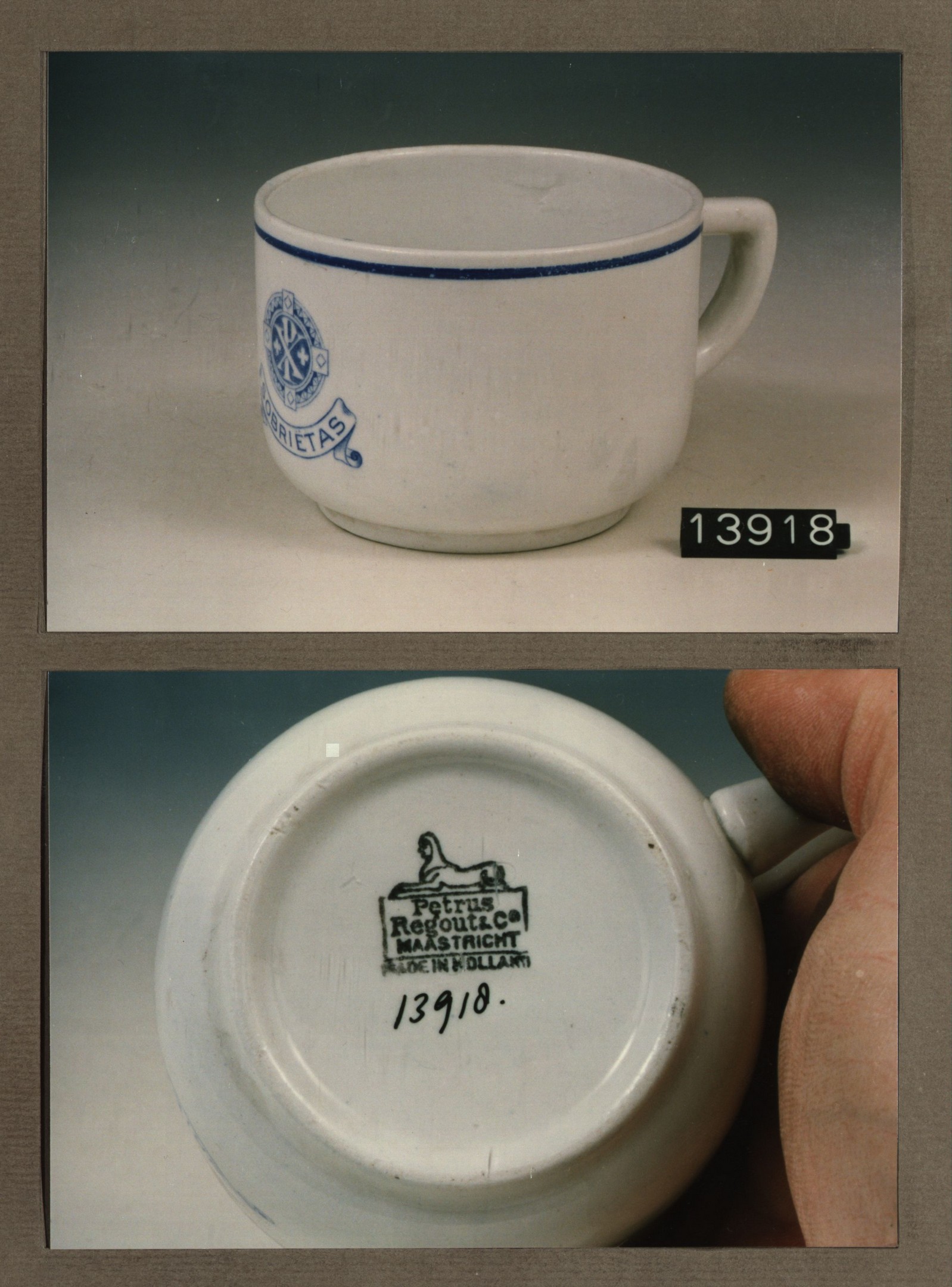 Kop met opschrift, model U met decor Sobrietas