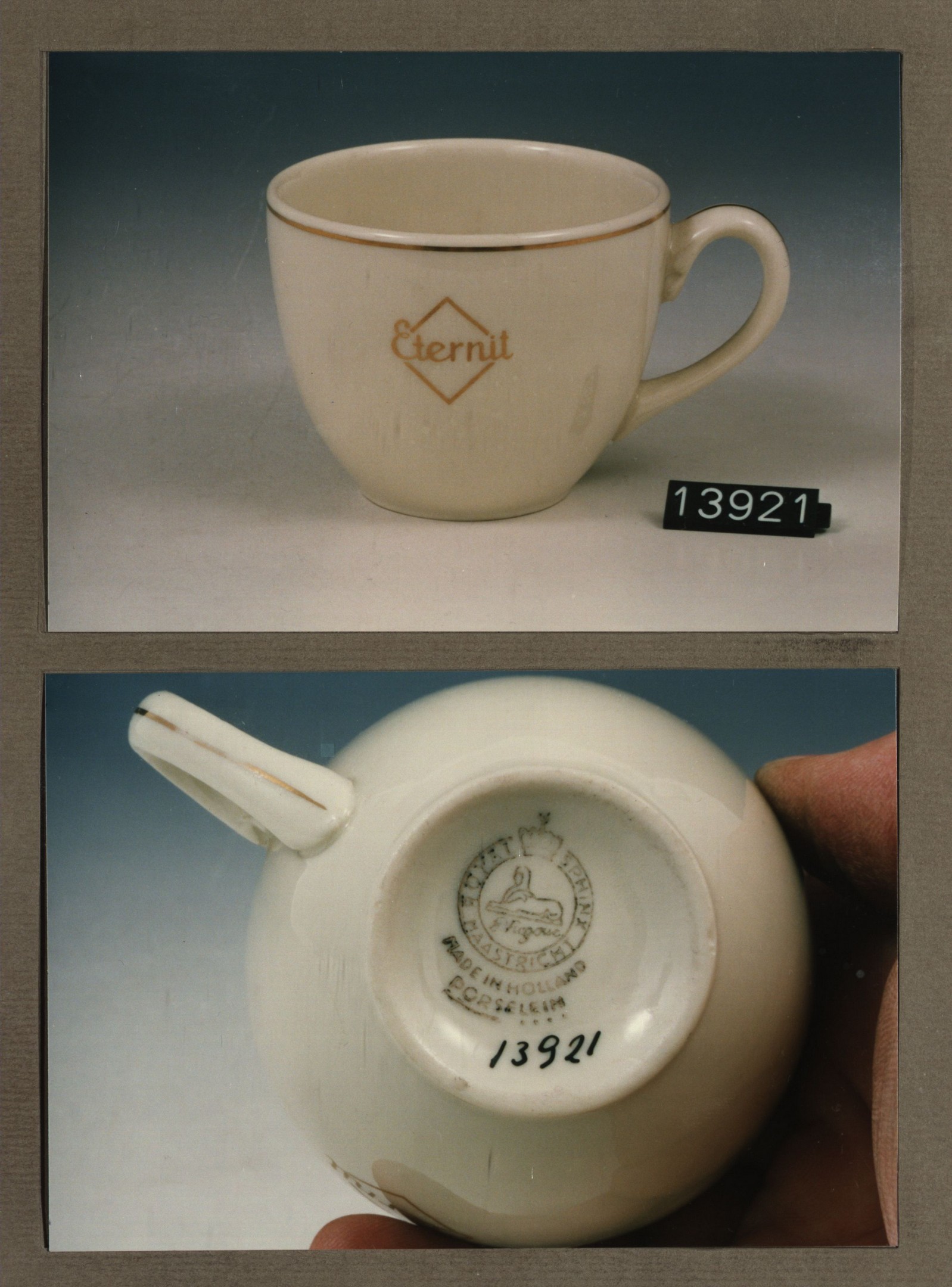 Kop met opschrift, model N met decor Eternit t'Gooi