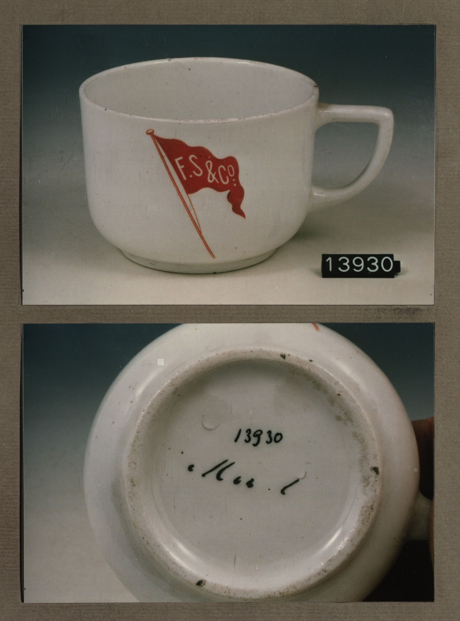 Kop met opschrift, model U met decor FS & Co vlagvig