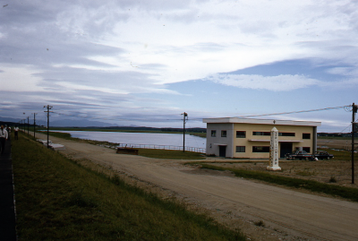 Gebouwtje op de ringdijk van de polder Hachirogata i...