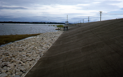 Ringdijk van de polder Hachirogata in Japan.
