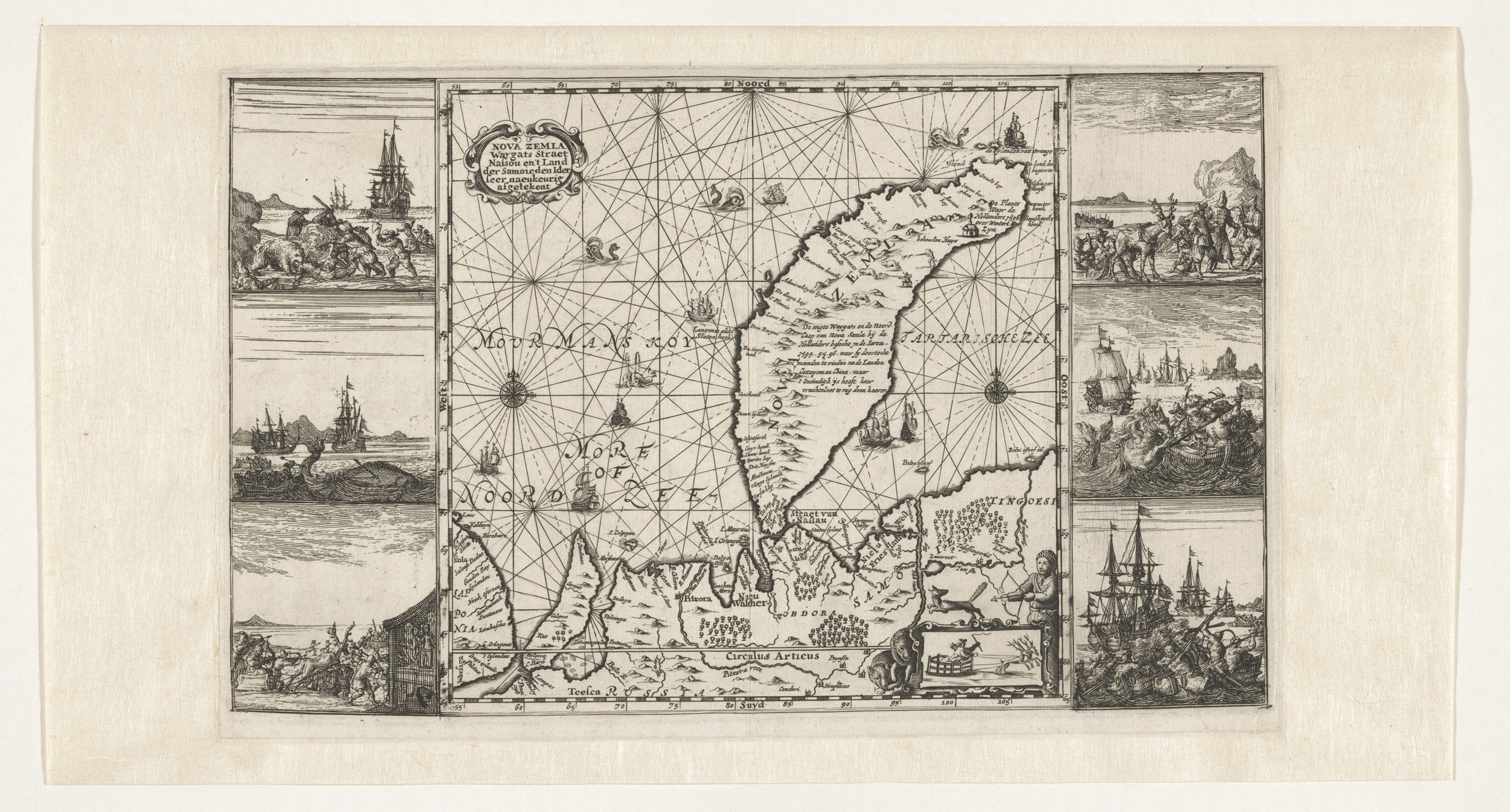 Kaartje van Nova Zembla met scènes uit de tocht, 159...