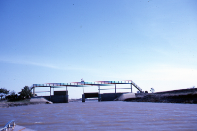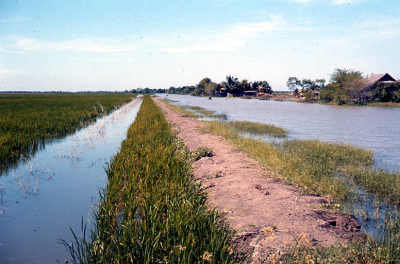 Dijk langs een rivier in Thailand, met daarnaast een...