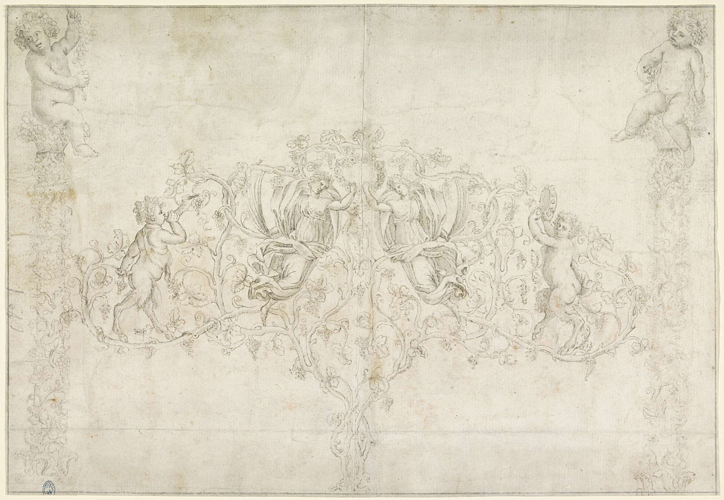 Wijnranken met saters en nimfen