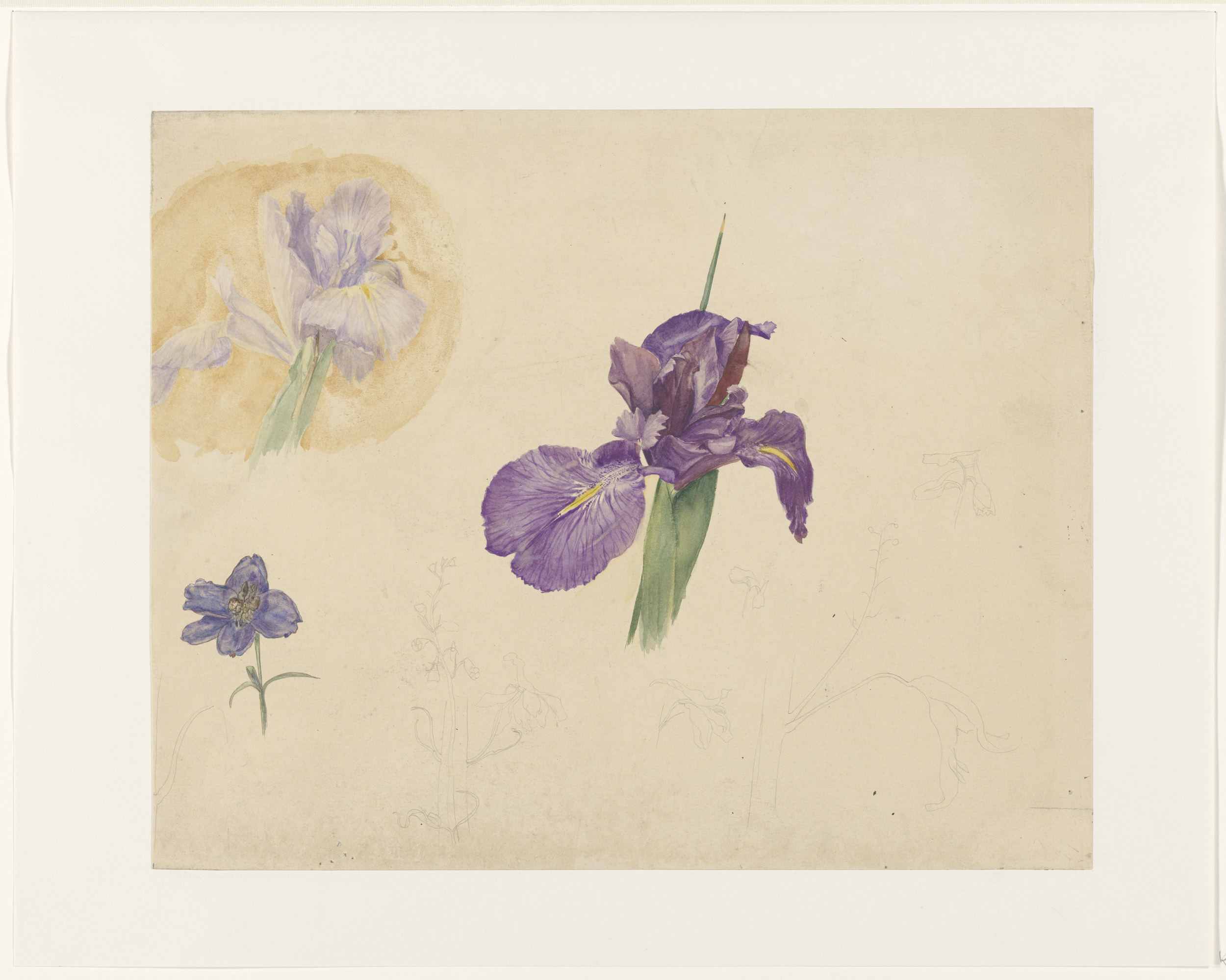 Studies van een iris en ridderspoor