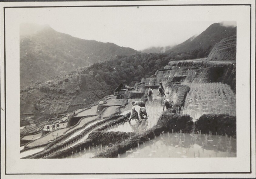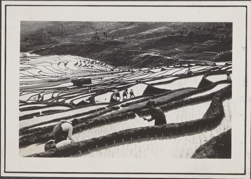 Het planten van rijst op rijstterrassen