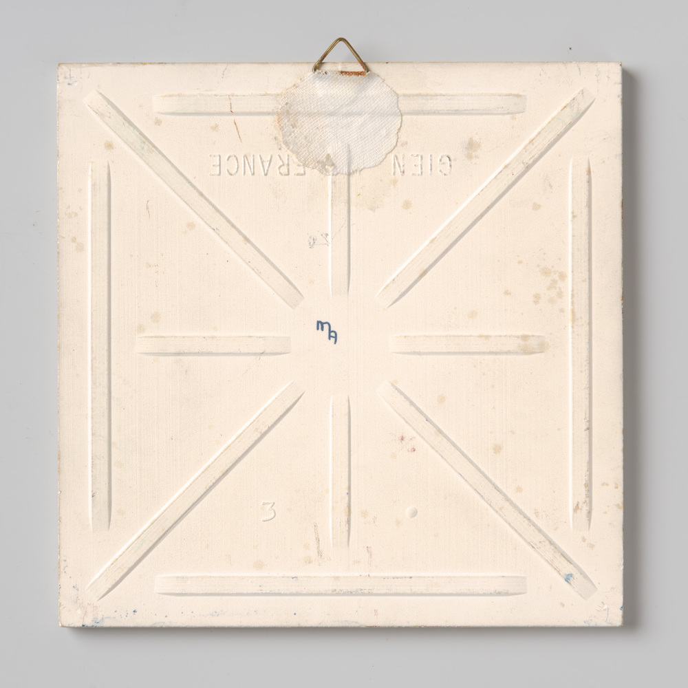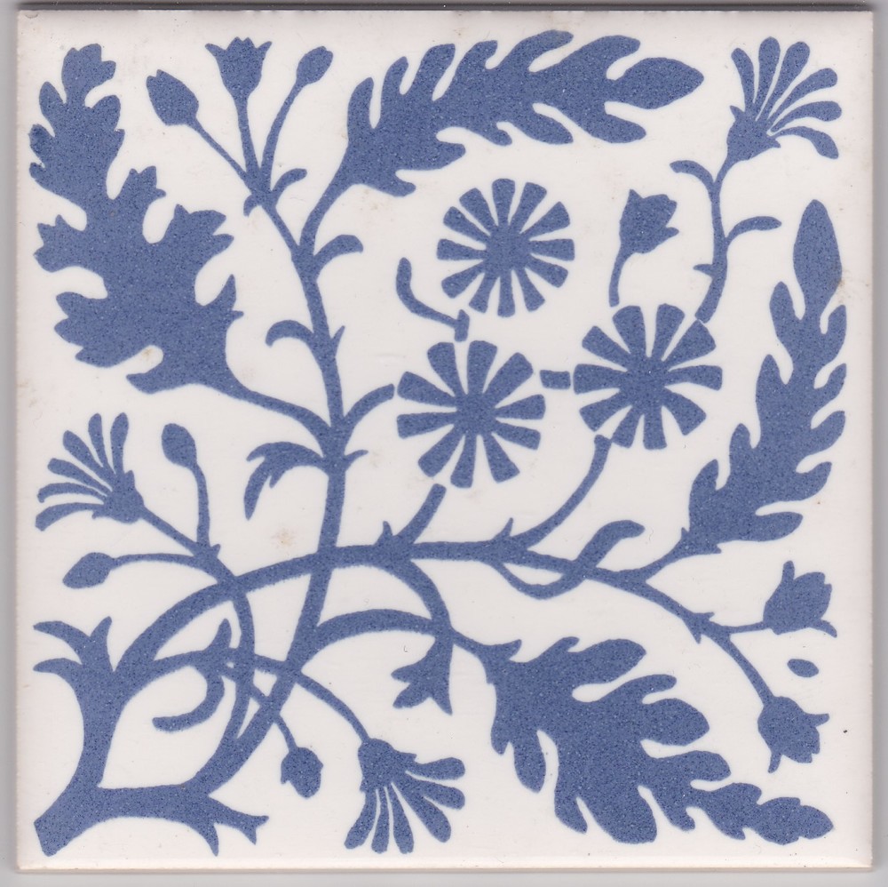 Tegel in zeefdruk, met voorstelling: decor Marigold,...